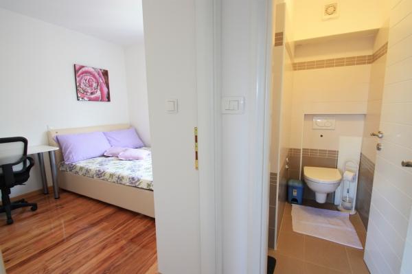 Denne eksklusive penthouse stjerne hjem er beliggende i en rolig og attraktiv beliggenhed ved siden af den romantiske promenade, som også byder på en fornyelse af krop og sind på grund af dens særlige Middelhavet planter ... den berømte turiststed i Crikvenica, som fejres over 120 år for turisme. Denne penthouse giver dig mulighed for at tilbringe en uforglemmelig ferie, langt væk fra den daglige stress og jag, omgivet af din familie og venner, en indhegnet gård er perfekt til sand nydelse i deres egen intimitet og fred. Interiøret er rummelige, diskret og elegant og meget moderne møbler, i henhold til de nyeste standarder. I stueetagen er stue med køkken og spisestue, med adgang til to terrasser på støtte under i de varme sommerdage kan du genopfriske og du kan nyde den smukke panoramaudsigt over havet og landskabet. Stueetagen har to soveværelser og to badeværelser (det ene med jacuzzi).