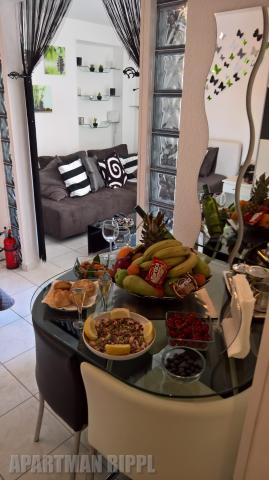 Turistskat er inkluderet i prisen.I vores studie / lejlighed venter dig en behagelig let sødlig overraskelse som et tegn på velkomst og ønsker for et behageligt ophold, samt en lille tegn på påskønnelse i form af souvenirs funktioner i vores by. Også i studiet / lejlighed tilbyder alle oplysninger og brochurer til din fritid og underholdning, hvor, hvornår og hvor, og det er op til dig at beslutte og vælge. I vores tilbud kan vi tilbyde en komplet udstyr og materialer til udendørs grill. AKTION: I perioden fra 01 10. 2017 -31. 05. i 2018 og 01. 10. 2018 -31. 05. 2019:e Ved ophold på 10 dage i den præ-sæsonen prisen er reduceret med 10%. Ved ophold på 20 dage i pre-season prisen er reduceret med 15% I 1. periode på 13 -30. 04. 2018 for et ophold på 8 dage, tilbyder vi 7 1 GRATIS eller for et ophold på 15 dage, vi tilbyder 14 1
