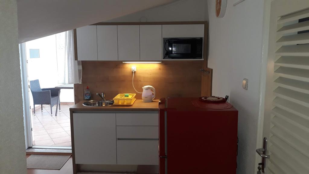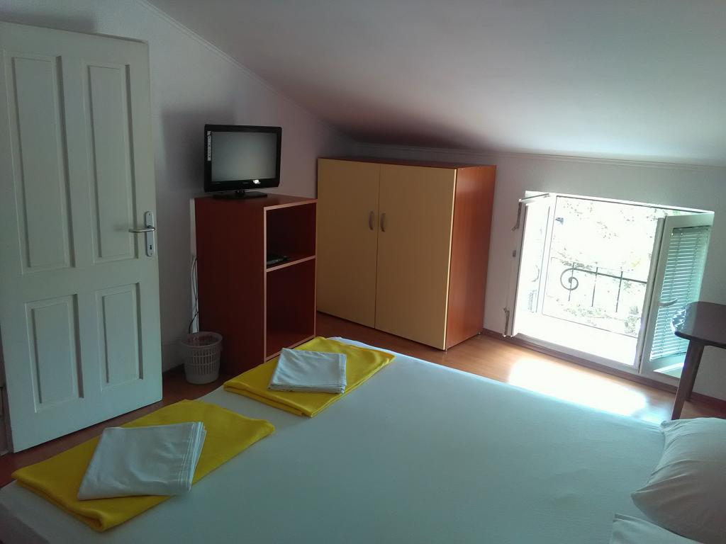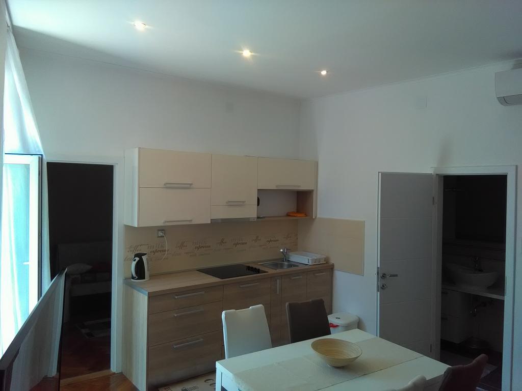 Helt renoveret lejlighed med moderne design med smuk udsigt over byens centrum. Lejlighed til 1-4 personer (40m²). Soveværelse, stue med køkken, badeværelse, balkon, tv, wi-fi, aircondition. Bedst til 2 voksne og 2-4 børn. - Afstand fra stranden: 1 min. - Afstand fra restauranten: Foran huset - Afstand til markedet: 2 min. - Byens parkeringsplads ligger 50 m væk fra lejligheden og koster 6 eur pr. dag, hele loftet i familiens hus, to værelser, køkken, badeværelse, terrasse , wifi, tv og aircondition. Rummet er beliggende på tredje sal og er kun tilgængeligt via trapper.