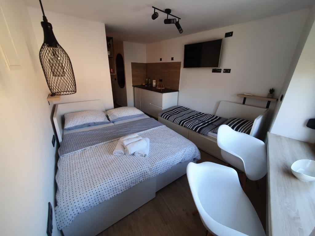 Helt nyrenoverede studielejligheder i centrum af Crikvenica. Vi tilbyder 3 moderne udstyrede boligenheder med alle de nødvendige faciliteter, der vil gøre dit ophold behageligt. Der er 4 offentlige parkeringspladser inden for en radius af 200 m. Busstationen ligger kun 70 m. Taxaholdepladsen ligger 10 m foran huset.