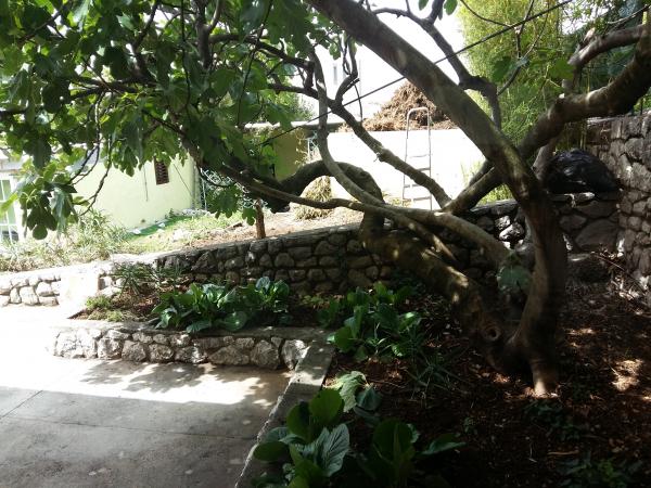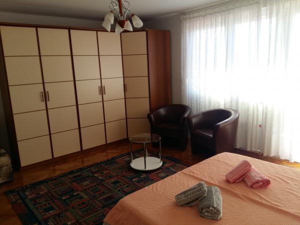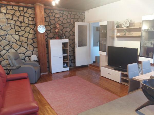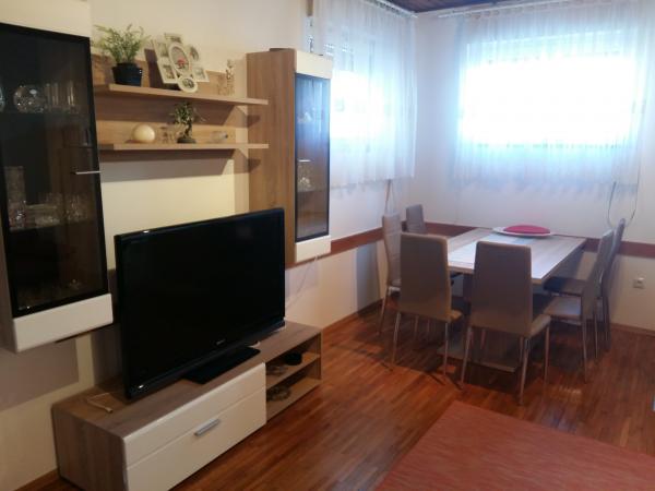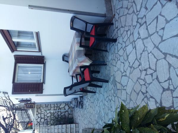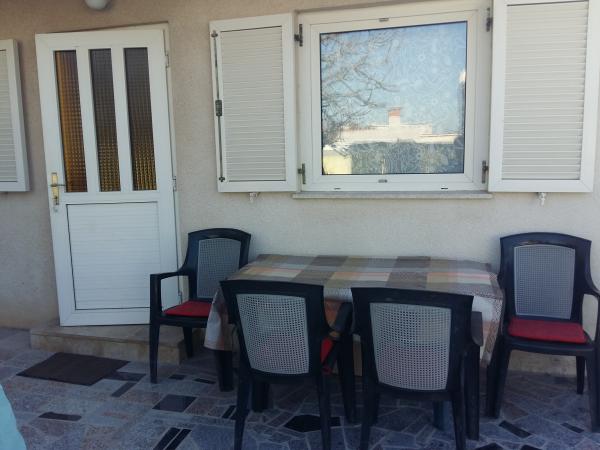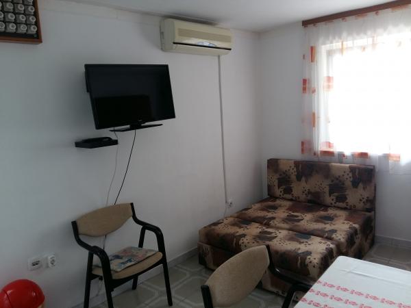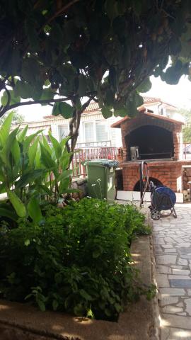 Komfortabel lejlighed 4 1 i en familie hus, fem minutters gang væk fra stranden, med en separat indgang. Den består af en entré og en stor stue med spiseplads og køkken (30 m2) i stueetagen, og ovenpå er to soveværelser - tre og to senge og et badeværelse. Triple værelse har en stor balkon. I rummet er to klimaanlæg - en i stuen, en anden i det store soveværelse. I badeværelset er en vaskemaskine. Lejligheden har en overdækket del skyggefuld indre gårdhave med at sidde. Køkkenet er udstyret med enheder (køleskab, kombineret el / gaskomfur, el. Ovn, mikroovn, kaffemaskine, elkedel, brødrister) og alle køkkenredskaber. Dejlig bungalow 2 1, 35 m2, adskilt fra de vigtigste hus. Den består af et køkken med spiseplads og ekstra ležaemj for én person, soveværelse med dobbeltseng, badeværelse og privat terrasse med udsigt over havet. Udstyret med aircondition og vaskemaskine.