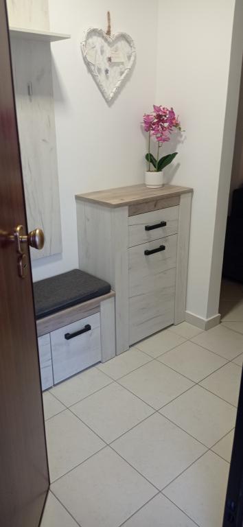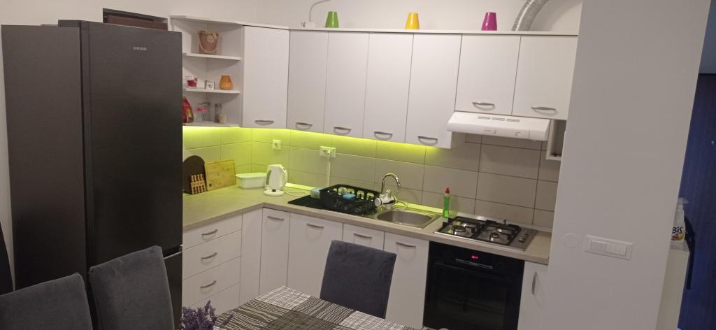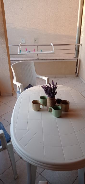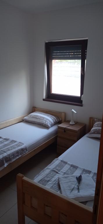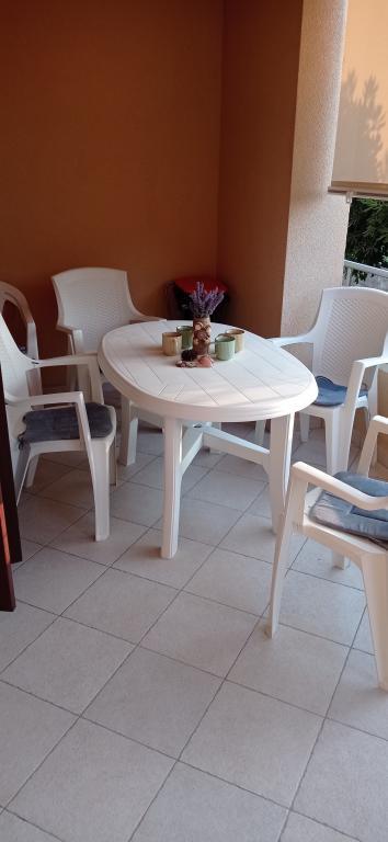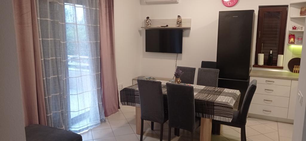 Lejligheden er beliggende i et roligt lejlighedskompleks i stueetagen af en bygning. Den er fuldt møbleret med husholdningsapparater til brug. Anlægget ligger 250 m fra den første klippestrand og 2 minutter i bil fra sandstranden i byens centrum. I centrum er der en butik, en restaurant, 2 kaffebarer på stranden og en kirke. Der er også en nyrenoveret promenade langs havet fra lejlighederne til centrum. Øen er ideel til sommerferier, fordi den er ideel til cyklister, gåture og løb på toppen af øen. Mange seværdigheder.