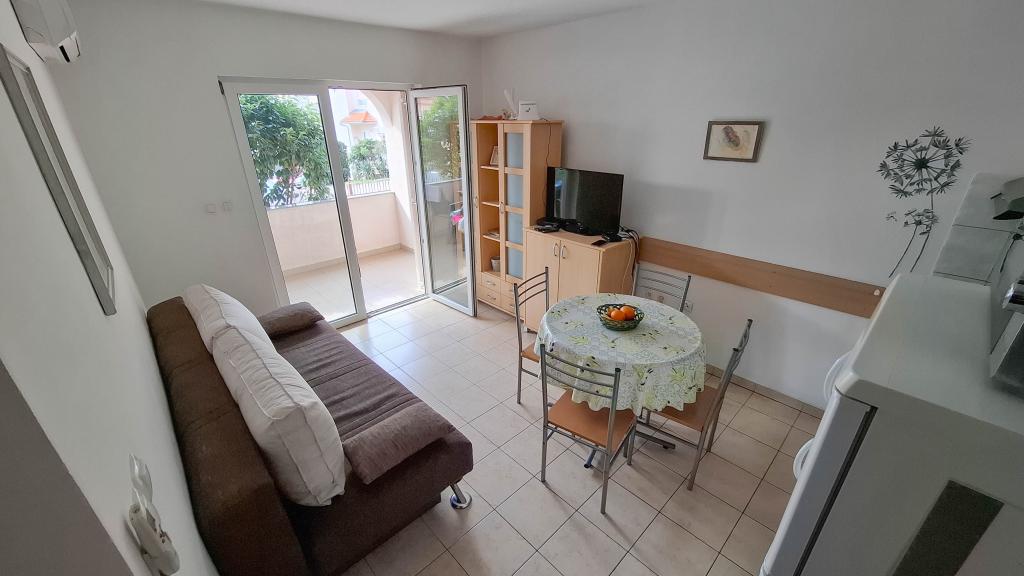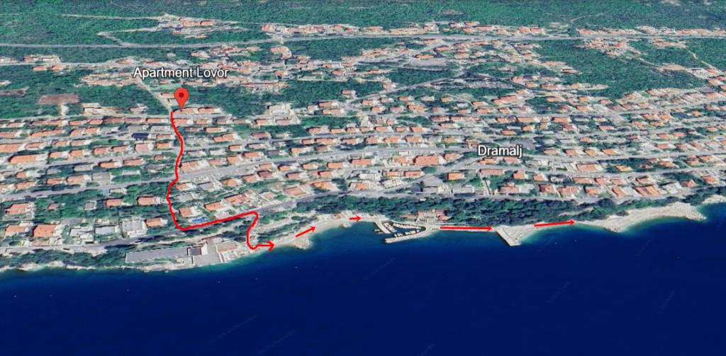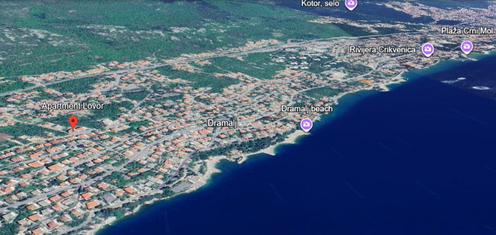 Lejlighed Lovor (31m²), stueplan i beboelsesejendom, roligt i Dramalj. 450m til havet, nær Thalassotherapia, Adrenalin Park og stier. Ideel til 2-3 voksne eller en familie. Indeholder soveværelse (160x200), badeværelse, terrasse og udstyret køkken (køleskab, komfur, mikroovn, elkedel, kaffemaskine, brødrister, udstyr) med stue (TV, sovesofa 75x200/150x200). Aircon, gratis Wi-Fi og privat parkering.