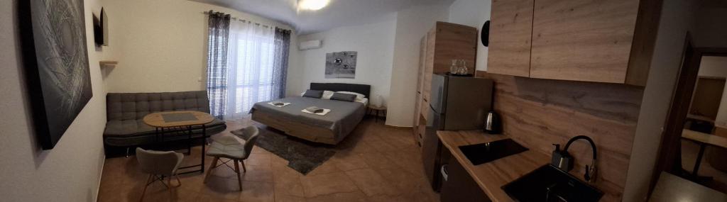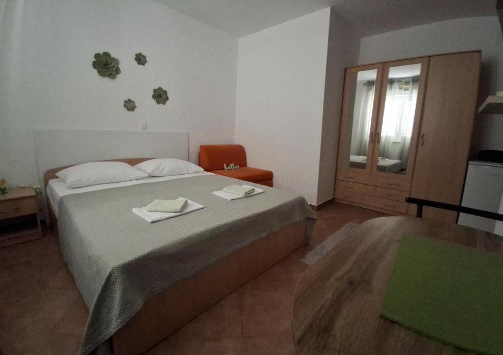 Til en pause fra hverdagen og det hektiske liv tilbyder vi studielejligheder eller værelser efter eget valg i en ny familiebygning, med udsigt over havet. Din bolig ligger 4-5 minutters kørsel til byen, og stranden 3-4 minutter. Lejlighederne har mulighed for at benytte udendørs grill, og ligger tæt på indkøbscentret Duga Mall og Lidl. Hos os har du til enhver tid sikret parkering, hvilket er det største problem for enhver turistdestination. Muligheden for at bruge klimaanlægget mod et ekstra gebyr på 5 EUR pr. dag. Din behagelige ferie i vores anlæg er vores største opgave.