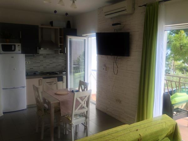 Fuldt udstyret og moderne lejligheder tæt på sandstranden. Gratis parkering. Et behageligt sted for grill, med havemøbler, omgivet af Middelhavet planter. Anlægget er placeret 1 minutters gang til stranden.