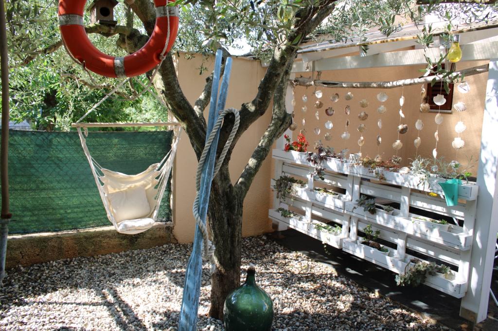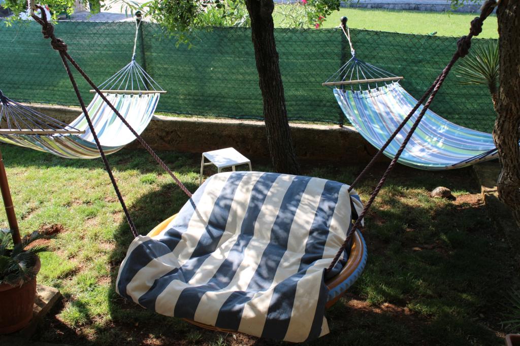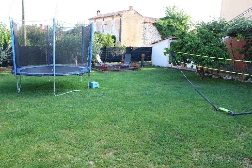 Lejligheden har fuldt udstyrede 3 soveværelser, 2 badeværelser, 1 køkken og stue med stor sofa, så der var plads nok til to familier. Desuden kan du spise udenfor på den overdækkede terrasse med stort bord. Du kan også gemme dig her for solen. Den store have med gynger og en trampolin er fantastisk til børn. Ejeren har her små skildpadder, som er så søde. Det er ikke langt fra havet og fra byens centrum med pubber og restauranter, men stadig har du her privatliv uden støj. Begge værter er virkelig hjælpsomme og venlige. Vi boede her to gange, og vi kommer helt sikkert tilbage igen, når vi besøger Fažana!