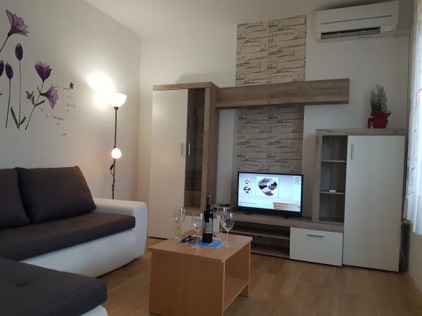 Ferielejligheder Mihatović Fažana ligger i Fazana (Region Istra). I sæsonen 2018 tilbyder vi en swimmingpool med boblebad bænk 7. 5x3. 5 meter 2x2 meter sektion for børn. Den består af 4 lejligheder: Lejlighed til 8 personer med 3 soveværelser 2 ekstra senge Lejlighed til 4 personer med 1 soveværelse og 2 ekstra senge, Lejlighed til 8 personer med 3 soveværelser 2 ekstra senge Lejlighed til 6 personer med 2 soveværelser værelse 2 ekstra senge. Ferielejligheder Mihatović Fažana væk fra centrum af 300m og er 300 m fra stranden. Indhold: SAT / TV, aircondition, internet wifi, rygning tilladt, kæledyr tilladt, etc.