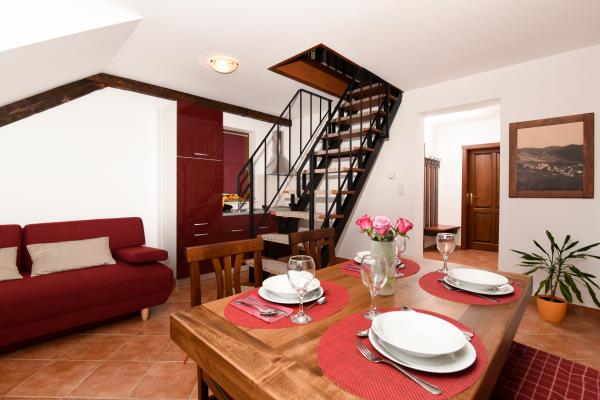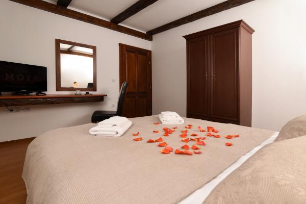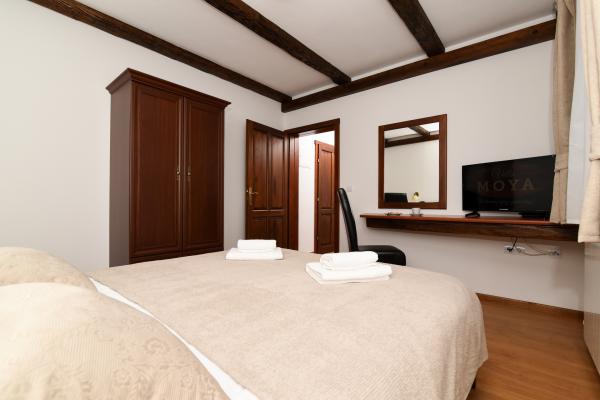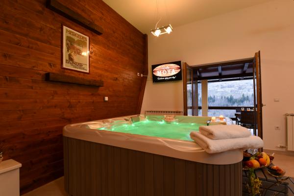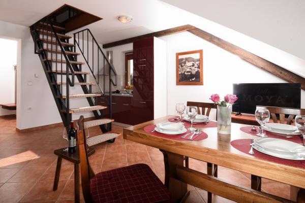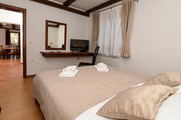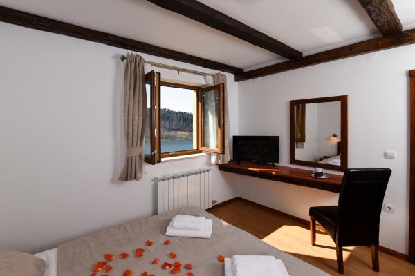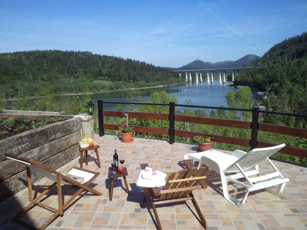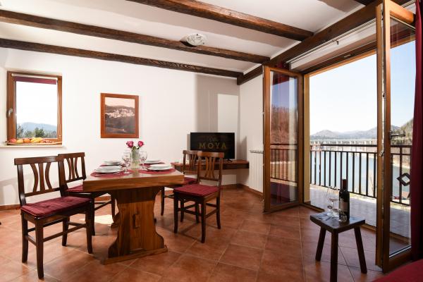 Højhus \ Villa MOYA \, placeret over søen Bajer med en enestående udsigt over søen og bjergene består af seks lejligheder, hver til to personer og to ekstra senge. Lejlighederne består af et eller to soveværelser, badeværelse, entre, stor stue med fuldt udstyret køkken, en balkon, gratis trådløs internetadgang, satellit-tv, parkering. Lejlighederne er indrettet i varme jordfarver, håndlavede møbler og naturlige materialer, alt hvad du behøver for en uforglemmelig ferie. Bygningen Villa MOYA stueetagen har plads til socialt samvær eller leg, bibliotek, pejs, pool, stor terrasse med liggestole, spa med jacuzzi, sauna og fitness. Vi har plads til 2-20 personer. \ Villa Moya \ beliggende i en fantastisk beliggenhed i hjertet af Gorski Kotar, over Lake Bajer, 700 m fra centrum af Fu, 25min kørsel til Adriaterhavskysten og stranden, 30 min fra byen Rijeka og 1 time fra Zagreb. Velkommen!