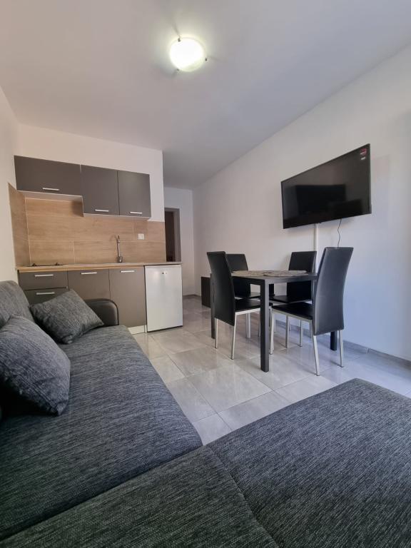 Velkommen til Gornji Karin, og det bedste hav i verden! Nyrenoveret strand, talrige restauranter og promenader til din perfekte ferie. Moderne udstyret lejligheder, med rigt udstyr i centrum af byen, anden række til havet. Lejlighederne ligger kun få minutters gang fra stranden, 10 fra centrum. Der er et postkontor, en hæveautomat, en købmand og adskillige restauranter kun få minutters gang væk. Lejlighederne er beliggende i et familiehus, har en sikker parkeringsplads, satellit-tv, har aircondition og indeholder alt det nødvendige til din ferie.