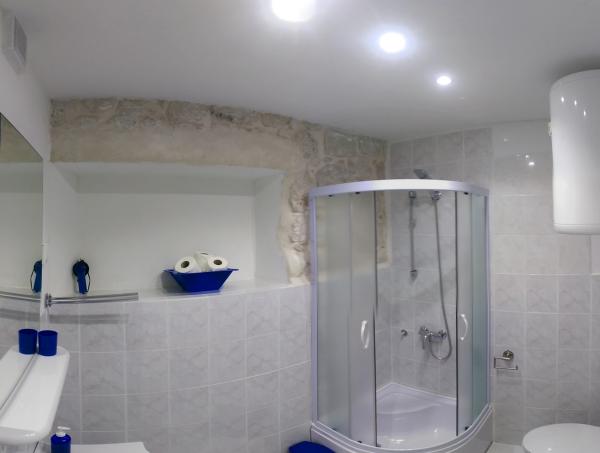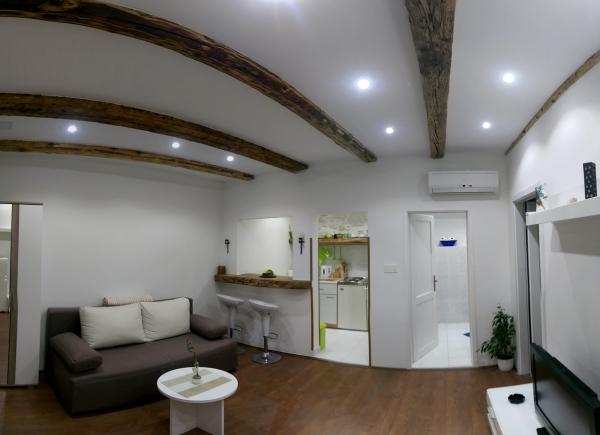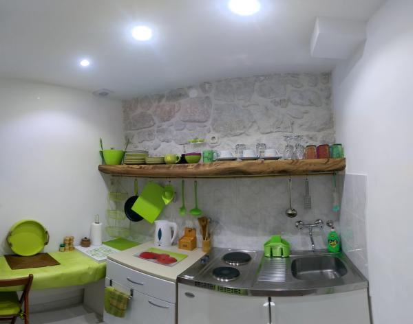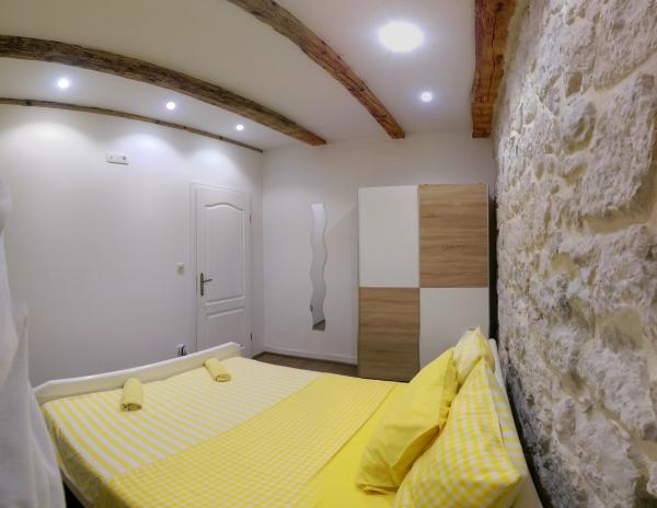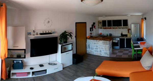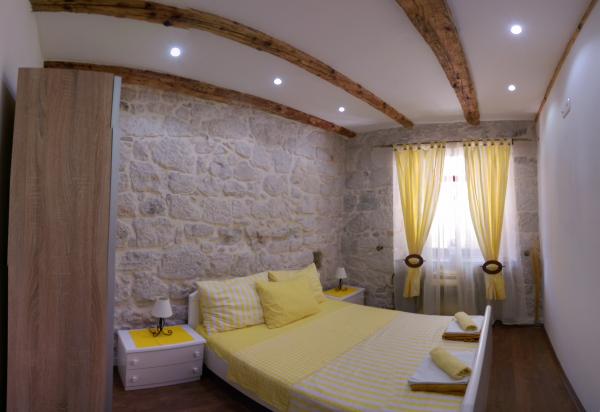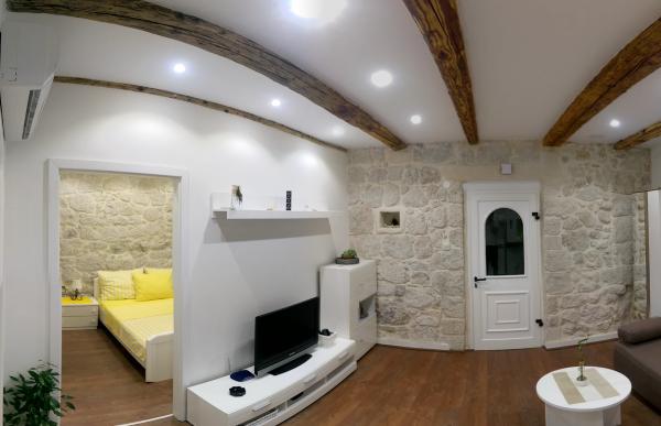 Stenhus med to nye lejligheder. Anlægget er placeret 5-6 minutters gang ned ad bakke fra centrum af Graz, strand, hav, restauranter, cafeer og butikker. Den første lejlighed (2 2) lejlighed i stenen del af huset i stueetagen, fuldstændig renoveret i gammel dalmatiner stil. Det har et soveværelse med en dobbeltseng og en stue med sofa, der udvider dimensioner anden stor seng til to. Det har også et køkken og badeværelse med bruser. Den er udstyret med aircondition, internetadgang, LCD-tv, satellit. Det har sin egen have med bord og stole. Den anden lejlighed (4 2) ligger på første sal, har to soveværelser med to dobbeltsenge, en stor stue med en sovesofa stor størrelse, stort fuldt udstyret køkken, badeværelse og balkon med bord og stole. Lejligheden har internet, aircondition, LCD-tv og satellit. Parkering er placeret bag huset og er uden beregning. Alle gæster kan bruge hele haven, udendørs køkken, et værelse med en vaskemaskine, grill og et stort bord med stole