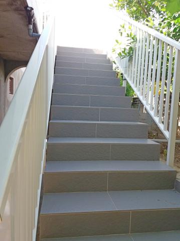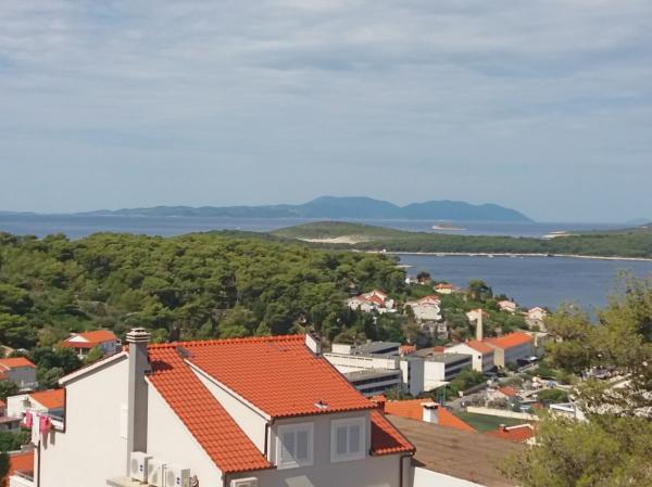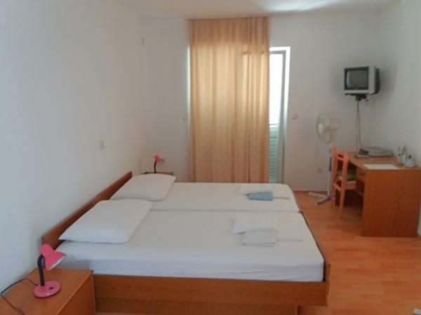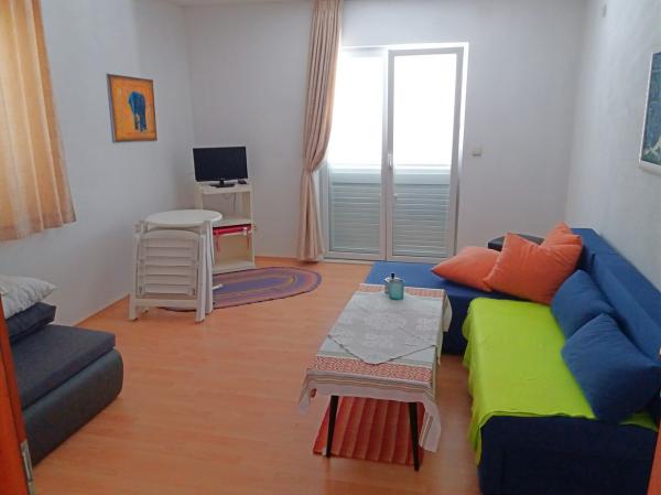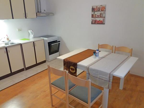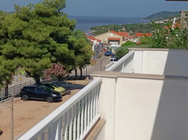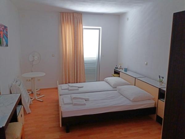 Huset er nybygget og væk fra havet 600 m. Lejligheden er beliggende på en separat etage og har egen privat indgang. Alle er moderne indrettet og udstyret til dit behagelige ophold, hvert værelse har sin egen terrasse med smuk udsigt. Lejligheden indeholder et køkken med spiseplads og en stue, der også har egen terrasse med havudsigt. Der er en fuld lejlighed med tre værelser, fire terrasser og to badeværelser, køkken og stue. Parkering er ikke privat, i gaden er der nok parkeringsplads fælles for alle naboer. Den smukke stenstrand nås til fods på mindre end 10 minutter. Der er en butik i bosættelsen, og andre faciliteter (bank, apotek) er i byens centrum 800 m væk.