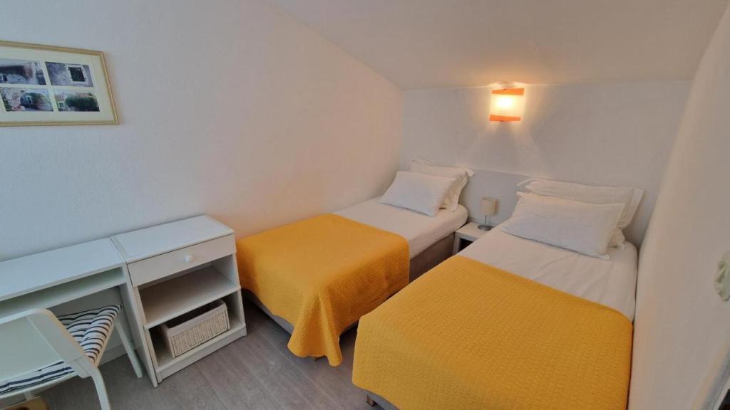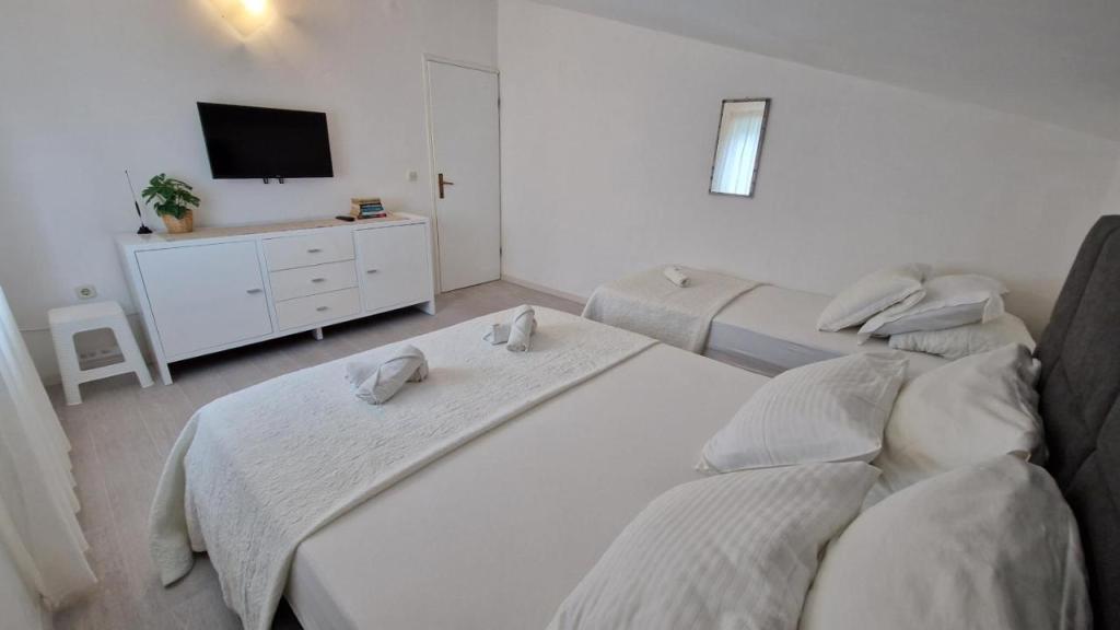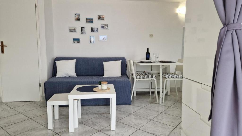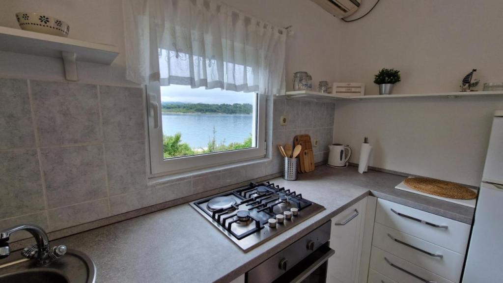 Nyd din ferie kun 5 meter fra havet i den rolige Knež-bugt på øen Iž. Denne komfortable lejlighed med to soveværelser tilbyder en rummelig terrasse med en smuk udsigt over havet og Zadar-øgruppen - ideel til morgenkaffe eller aftenafslapning. Lejligheden har aircondition og er fuldt udstyret til et behageligt ophold: et køkken med alle nødvendige faciliteter, en vaskemaskine, gratis WiFi, et tv, et skrivebord, en komfortabel stue og et privat badeværelse. Gæsterne kan også benytte gratis parkering i nærheden. Der er grill på bagterrassen. Lejligheden ligger i rolige og afslappende omgivelser og er et perfekt valg for familier og alle, der søger en fredelig ferie ved det krystalklare hav.