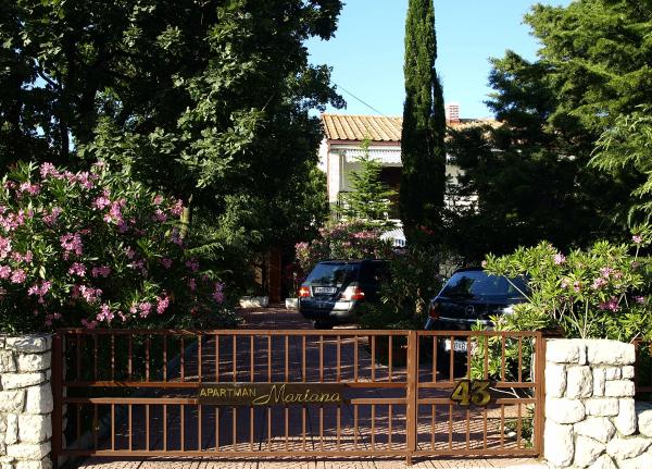 Lejlighed Mariana hele huset med havudsigt, beliggende i et roligt område og består af 3 soveværelser (2 dobbelt og 1 triple), 2 badeværelser, fuldt udstyret køkken med spiseplads, balkon og terrasse. I gården er der to gratis parkeringspladser og med terrasse med bord og stole grillen. For alle gæster er gratis WiFi. Lejlighed Mariana er nær tre strande, som er nået ved trapper, en butik og en restaurant er en 5 minutters gang.