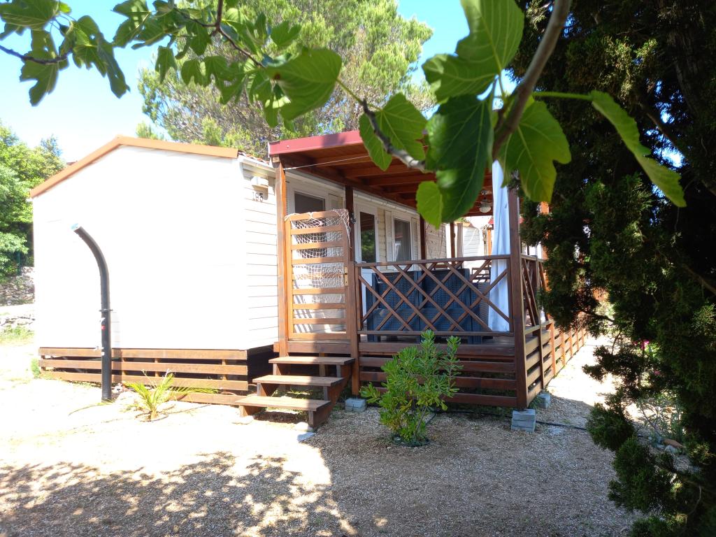 Luksuriøst udstyret mobilhome (8x4m) med en kapacitet på 4 plus 1 person, er beliggende i den smukke lejr Jezera Village Lovišća på øen Murter. Huset ligger i en rolig del af lejren, kun 3 minutters gang fra stranden. Det har to soveværelser, to badeværelser med brusekabine (hårtørrer tilgængelig), plus en udendørs bruser og en stue med et fuldt udstyret køkken (ovn, kogeplader, mikroovn, køleskab med fryser, elkedel, kaffemaskine, brødrister ). Huset har aircondition (køling/varme), kabel-tv, wifi. En stor overdækket terrasse på 7x3 m udstyret med grill, sidde- og spisemøbler, liggestole og havudsigt vil gøre dit ophold specielt. Sengelinned og håndklæder er til rådighed (skift på den ottende dag af opholdet). Der er gratis parkeringsplads ved siden af selve huset.