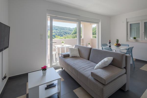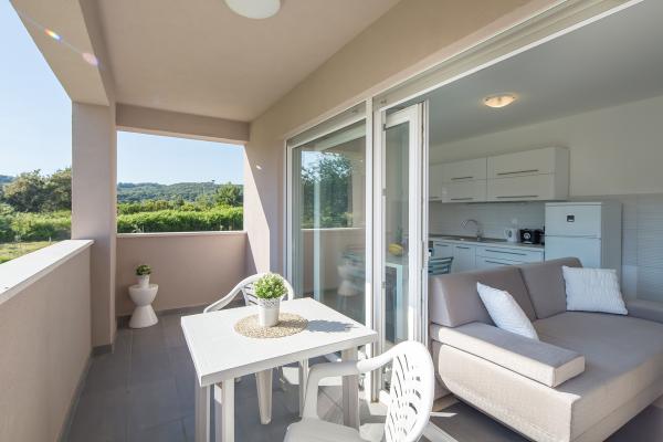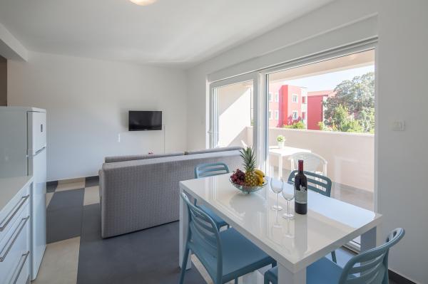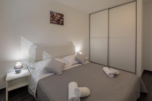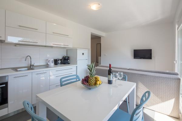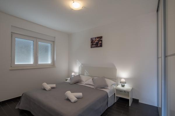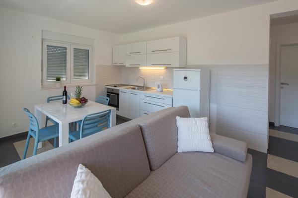 Moderne lejlighed, fuldt nyindrettet i en smuk og fredelig del af den solrige ø. Anlægget består af 3 lejligheder. To af lejlighederne er 50 kvadratmeter og give plads til op til 4 personer (2 2). De består af et soveværelse med en rummelig dobbeltseng, køkken, spisestue og sovesofa, badeværelse med badekar og en stor balkon med bord og stole. Den tredje lejlighed på 70 kvadratmeter er placeret på to etager og giver plads til op til 6 personer (4 2). Den indeholder to værelser. I det ene værelse er en rummelig dobbeltseng i et andet rum på første sal to enkeltsenge og en stor terrasse med liggestole og havudsigt. Lejligheden har et køkken, spisestue og sovesofa, badeværelse med badekar og en balkon med bord og stole. Fås til gæster: - Gratis internet - Kabel TV med mere end 200 programmer - Fuldt udstyret køkken - Aircondition - jern - Hårtørrer - Gratis parkering VELKOMMEN !!!!