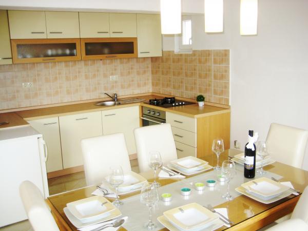 Lejlighed Antton er beregnet til i alt 8 personer. og er beliggende i et hus i en rolig del af Kastel Kambelovac og er netop blevet renoveret og komfortabelt indrettet. Den består af en rummelig stue / køkken og spisestue, 3 soveværelser og 2 badeværelser. Hvert vindue i stuen og spisestuen tilbyder en betagende udsigt over havet og oliventræer, der findes i haven. Du kan nyde en grill i haven, som er omgivet af oliventræer eller på terrassen med en fantastisk udsigt. Lejligheden har tre soveværelser, et værelse har to enkeltsenge og de 2 andre soveværelser har hver en dobbeltseng. De to badeværelser er fuldt udstyret, herunder vaskemaskine. Et badeværelse har et brusebad og det andet badeværelse har et badekar. Lejligheden tilbyder alle de faciliteter, der er nødvendige under opholdet (gratis Wi-Fi, aircondition, kabel-tv, opvaskemaskine, vaskemaskine, hårtørrer, strygejern og strygebræt, håndklæder, sengetøj.). . To private parkeringspladser er til rådighed foran huset.