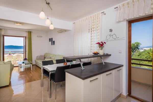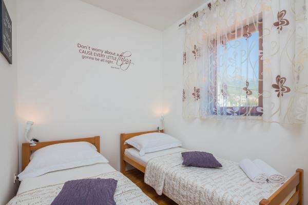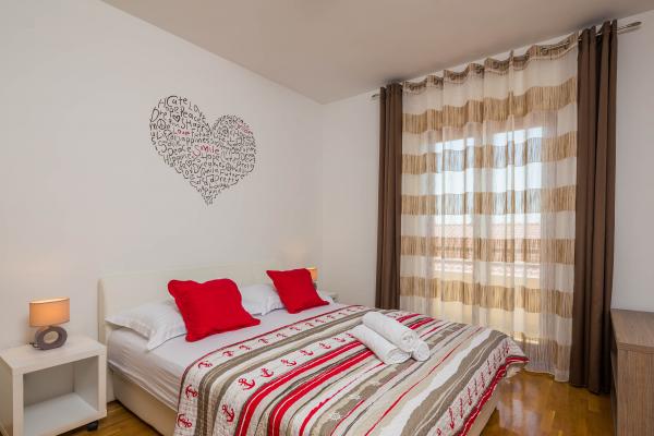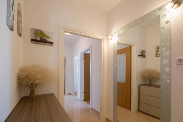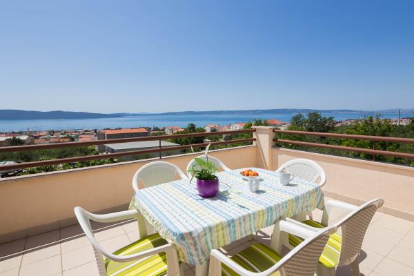 Lejligheden er beliggende på første sal med udsigt over havet. Det har tre værelser med en dobbeltseng, en seng til to personer placeret i stuen, køkken, stue, badeværelse, toilet, tre altaner med udsigt over havet. Apartment størrelse er 90m2. Lejligheden er beliggende i Kastela bugten, en af de syv landsbyer i Town slottet, nær den berømte marina du i stand til at rumme private og charterbåde men dette er en destination for mange sejlere. Nærliggende facilitet til rådighed forskellige typer af barer, restauranter og butikker. Hvis udkig efter bolig, der tilbyder en helt afslappende atmosfære tæt på havet, så er du kommet til det rette sted. Smukke strande, milde middelhavsklima, rig på muligheder for sjov og underholdning i den luksuriøse og møbleret lejlighed vil gøre dit ophold uforglemmeligt. For enhver rådgivning og service under dit hosting velkommen til at kontakte værter, der er klar til at hjælpe dig med at få mest tid på ferie.