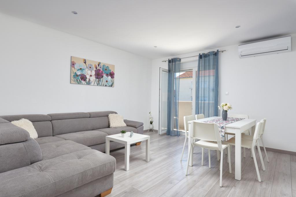 Nyrenoveret lejlighed med stor terrasse og altan. Beliggende i Kaštel Štafilić, et lille, roligt sted, nær UNESCO-byerne Trogir og Split. Et ideelt sted for en familieferie. Lejligheden består af et fuldt udstyret køkken, en stue, tre soveværelser med dobbeltseng og et badeværelse. Lejligheden har aircondition, har 4 parkeringspladser, WiFi, TV og elektrisk grill. Babysæde og barneseng er tilgængelige efter anmodning. Stranden med cafébar, pizzeria og legeplads ligger 5 minutters gang derfra. Inden for 200 meter fra lejligheden er der butikker, caféer, restaurant, slagter, fiskemarked, hæveautomat, apotek. Det nærmeste indkøbscenter ligger 5 minutters kørsel derfra.