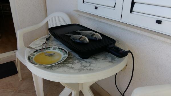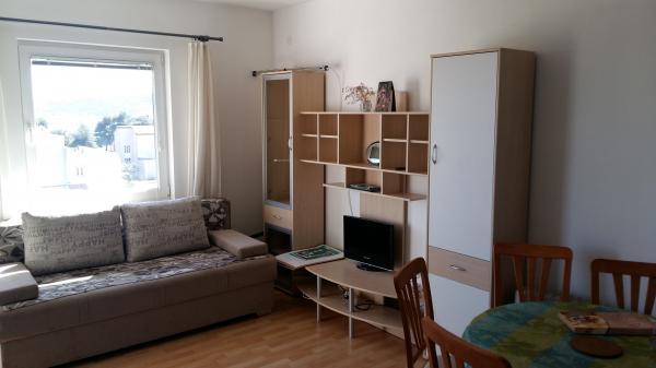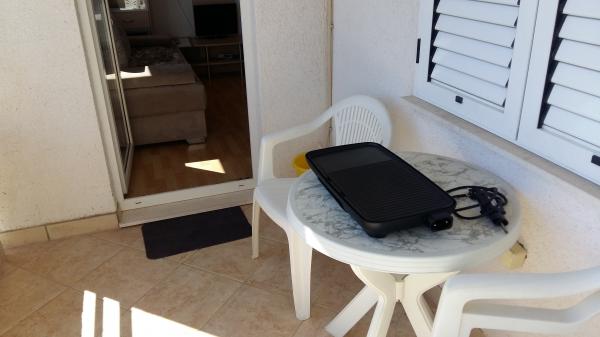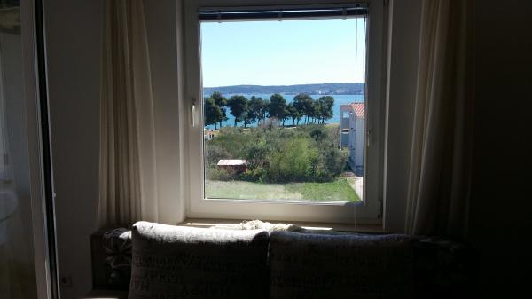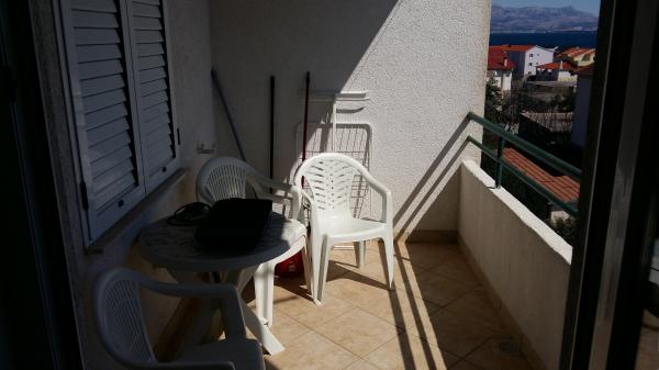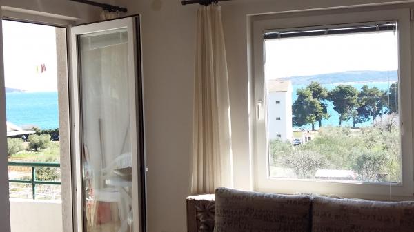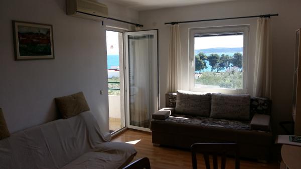 Lejligheden ligger på tredje sal i en boligbygning i Kaštel Štafilić, distriktet Bile, nær Resnik. Det vender ud mod havet og tilbyder en smuk udsigt over hele bugten Kaštela, Split og de nærliggende øer. Det er beliggende i et roligt sted i slutningen af gaden, så der er ingen støj. Den 45m2 lejlighed består af hallway, badeværelse, soveværelse, stor stue med køkken og loggia. I soveværelset er der en stor seng til to personer, i stuen er der en stor sovesofa, der bliver til en stor seng til to personer og en anden mindre tre-personers. Køkkenet er fuldt udstyret, kaffemaskine, opvaskemaskine, ovn. På loggia er det muligt at bruge en elektrisk grill. Lejligheden har en hårtørrer, støvsuger, strygejern. Brug af klima betales ikke ekstra.