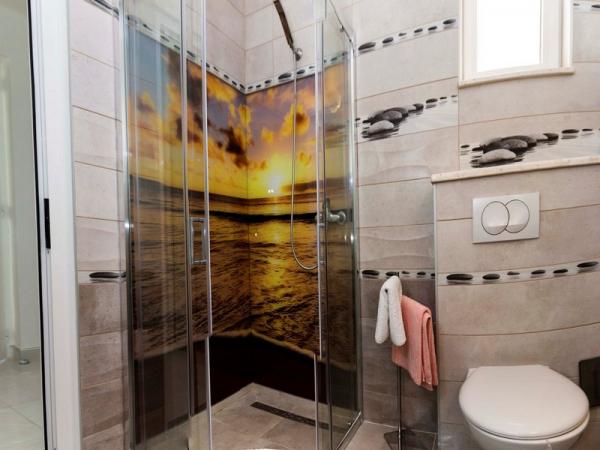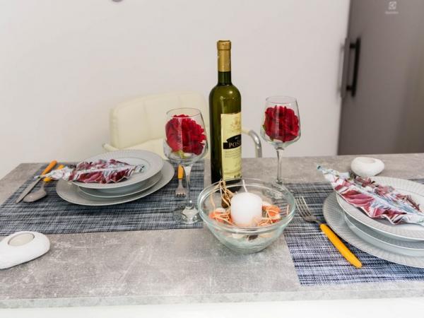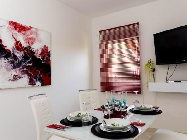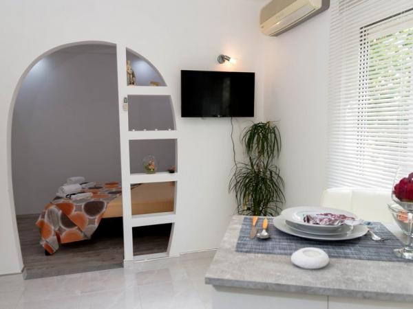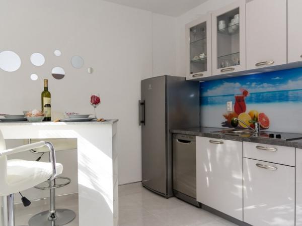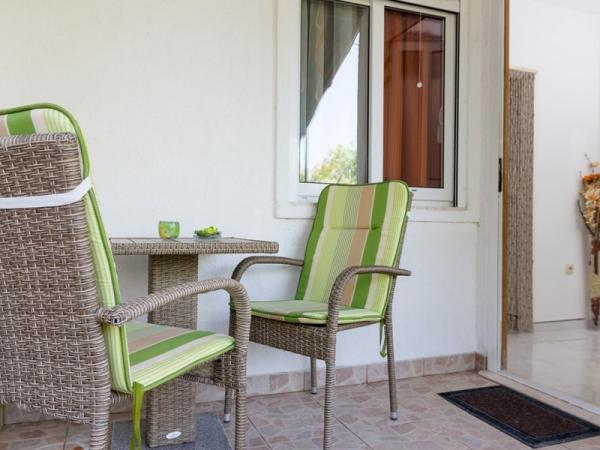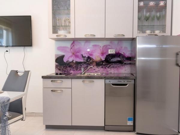 Fuldt udstyret og moderne udstyrede lejligheder '' Ljiljana '', med alle husholdningsapparater, herunder opvaskemaskiner, samt alle rengøringsredskaber, der er en del af service og hygiejneforanstaltninger (sæbe, shampoo, toiletpapir) ligger på græsfladen (ca. 800 m2) med direkte adgang til stranden, og stranden, der stammer fra samme grund, er en lille sandstrandbuske. Essensen af selve beliggenheden er, at den ikke er tæt på vejen, og hver gæst har privatliv, og den græsklædte overflade samt bugten er velegnet til børns glæde såvel som ubekymret ferie af deres forældre. Ved siden af apati er der en separat overdækket terrasse (45 m2) med udsigt over hele Kaštelas bugt, om aftenaften og om dagen, og der gives en særlig bemærkning til havets støj om natten og stilheden, der brydes af symfonier. Ud over terrassen har gæsterne en grill samt liggestole uden ekstra beregning. Inden for lejligheden er der en privat overdækket parkeringsplads.