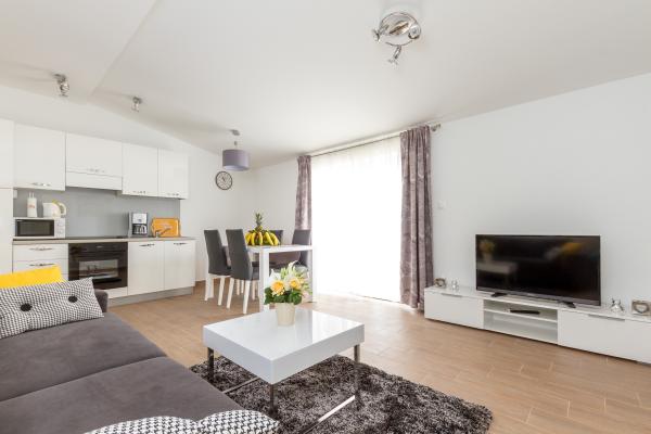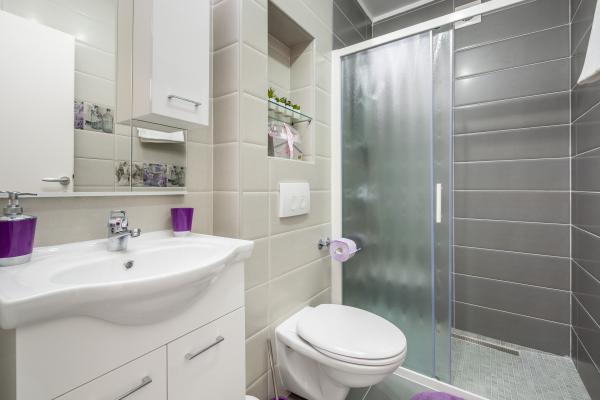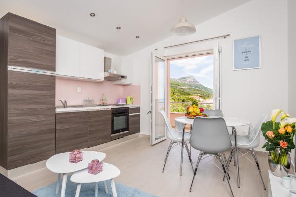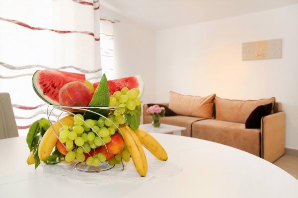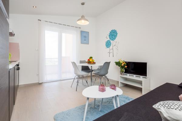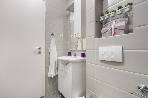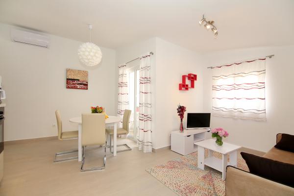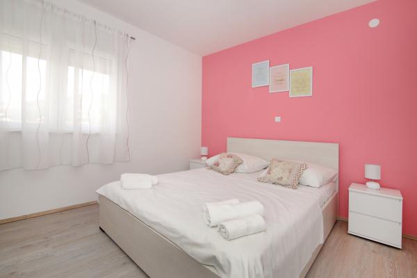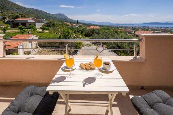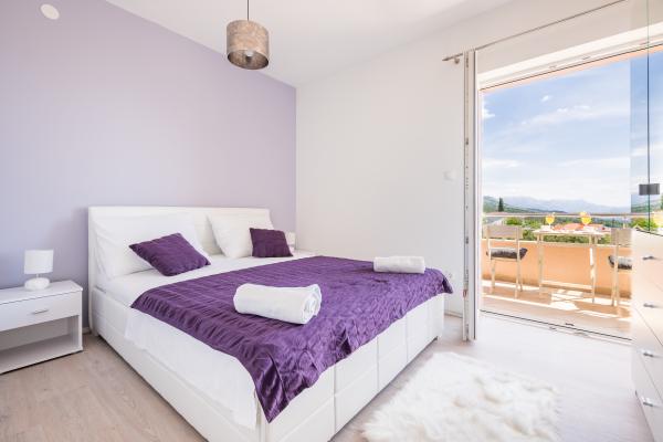 Helt ny lejlighed beliggende i Kastel Stari mellem to UNESCO beskyttede by Split og Trogir. Beliggende på øverste etage af huset (tredje) etage tilbyder en fantastisk panoramaudsigt. Interiøret er stilfuldt designet og udstyret. Den rummelige stue består af en stor sofa, et køkken, et fladskærms-tv tilbyder også en smuk panoramaudsigt med en stor balkon. Badeværelset er moderne udstyret med alt hvad du behøver. Soveværelset er rummeligt med en king size komfortabel seng. Udvendig af huset er virkelig stor, byder på en grøn have fuld af frugt, grøntsager og blomster.
