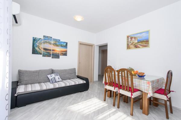 Resnik Apartments er beliggende i et roligt område, kun 5 minutter fra byens centrum. Det er et ideelt sted for dem, der har brug for hvile og afslapning, samt for dem, der er på udkig efter andet indhold-man kan finde masser af aktiviteter og arrangementer (kulturelle begivenheder, udstillinger, koncerter, fiskernes aftener etc.). I en afstand af kun 100 meter fra huset er en smuk kilometer lange strand (grus og sand). Afstand fra byen Trogir, som er på UNESCOs liste over World Heritage Sites ligger kun 10 minutter væk, og hvis du ikke har et transportmiddel, bus station er 100m (tidsplan hver 20min). I umiddelbar nærhed er der mange restauranter og barer og promenade. Fodbold og basketball domstole, tennisbaner og en legeplads for beachvolley væk SU100 m. City of slot tilbyder et bredt udvalg for alle aldre, og du vil helt sikkert ikke være kede. Til rådighed, tilbyder vi gratis parkering, brug af håndklæder og andre fornødenheder, som du eventuelt kunne bruge.