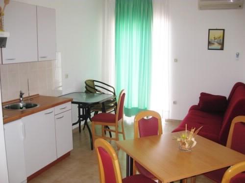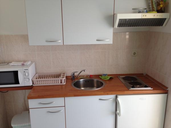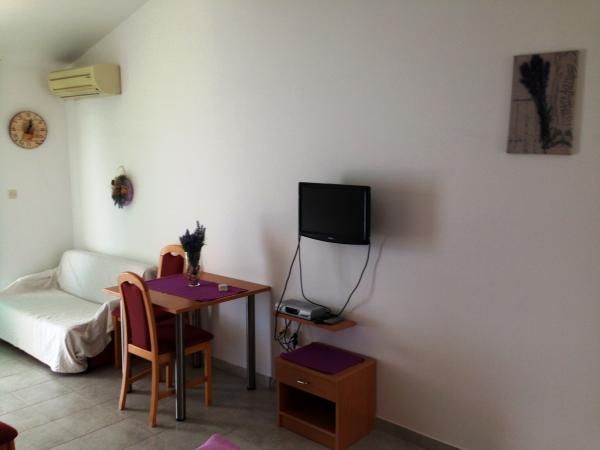 Very nice lejligheder. Køkkenet er udstyret med gryder, bestik, glas, tallerkener og skåle. Vi forpasset kun kedel. I lejligheden var også håndklæder, lagner og endda viskestykker. Det var temmelig meget alt hvad du behøver for at fungere. Alt spotlessly ren. Til havet ned ad trappen og du har et minut til at gå, men uden tragedie. Stranden er en ganske stor konkret platform, privat for lejligheden Dalmatino. Solsenge er gratis i omkring 12 stykker. For alle gæster for lidt, men vi havde ingen problemer. Altid langsom dørmanden var han. Ved lejligheden kølig grill, der kan anvendes. Ejerne var meget nice og let går. Samlet set en virkelig anbefalelsesværdige lejligheder. Jeg vil anbefale 100%.