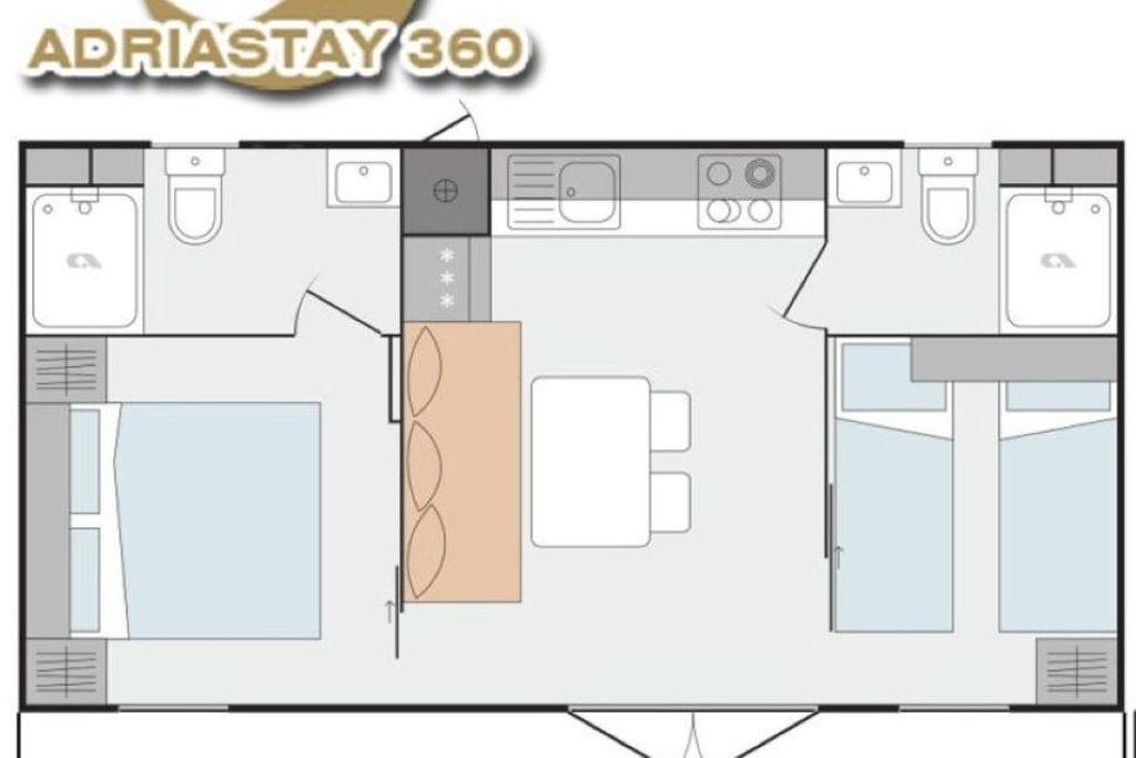 Adriastay 360 er et luksuriøst mobilhome beliggende på Klenovica campingplads, på en grund 100 m fra stranden. Nyd den smukke udsigt fra terrassen over det endeløse hav og øen Krk, og oplev en uforglemmelig solnedgang. Ud over swimmingpoolkomplekset 50 m fra huset har campingpladsen et købmandsforretning med bageri, der tilbyder friske produkter dagligt. Gastro Corner er en restaurant, der tilbyder fiske- og kødretter samt pizzaer. Der er caféer med forfriskende drinks og is langs stranden. Hvis du vil gå, jogge eller er interesseret i at cykle, er der stier til fiskerlandsbyen eller en sti langs havet. Bliv vores gæster og tilbring den mest vidunderlige ferie med din familie, partner eller venner.