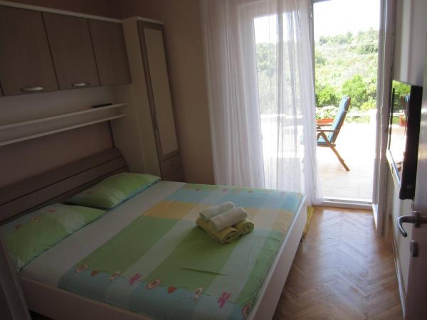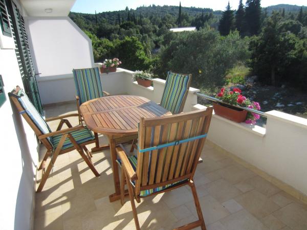 Lej 3 værelses lejligheder i huset på første sal, en rolig landsby, Økonomi, ligger 1. 5 km fra byen Korcula. Alle lejligheder har aircondition, består af et soveværelse, køkken, badeværelse og balkon. Forudsat du en parkeringsplads og gratis trådløs internetadgang.