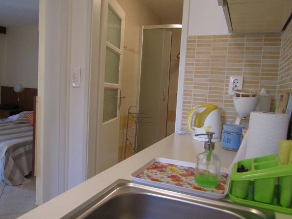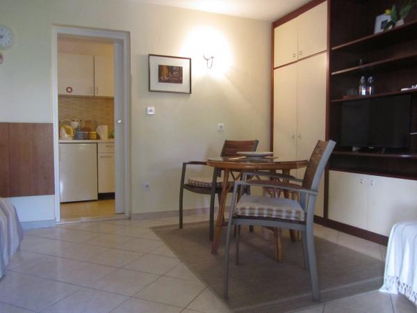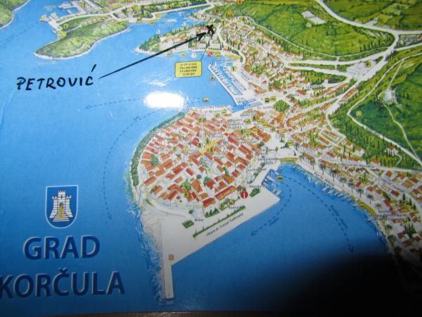 Lejligheden er beliggende i et roligt familie område Korcula, i familiens hus med egen indgang, privat terrasse med udsigt over haven. I nabolaget er der et fitnesscenter og tennisbaner. Stranden kan nås på 10 minutters gang, butikken er omkring 100 m væk, nok til dagligdags fornødenheder, ca 700m væk er der en større indkøbscenter. Byens centrum er omkring 20 minutters gang. Parkering er til rådighed. privat, ved siden af lejligheden. Lejligheden er fuldt udstyret med alle apparater, der kan have brug for i løbet af ferie-komfur, køleskab, mikroovn, kaffemaskine, elkedel, kafetjera, brødrister, strygejern, strygebræt, brug af vaskemaskine på forespørgsel. Sengelinned og håndklæder er gratis. Wi-Fi er tilgængelig i hele bygningen og fri, også. Tv'et er et fladskærms-tv, satellit-antenne er.