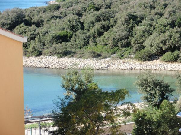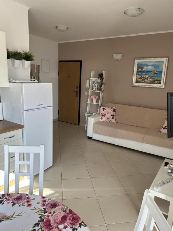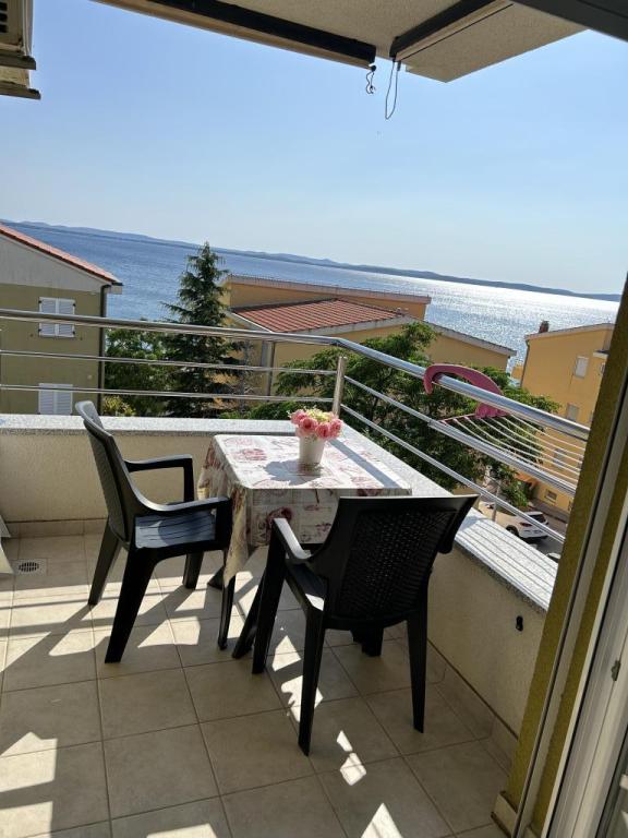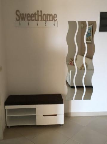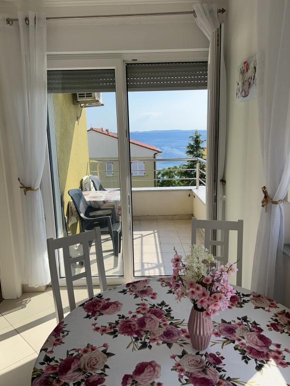 Moderne lejlighed i en rolig boligbygning på tredje sal med en smuk udsigt over havet. Lejligheden har et soveværelse med en dobbeltseng, en sofa med udtrækssofa, et fuldt udstyret køkken og en terrasse med en smuk udsigt over havet. Lejligheden ligger 50 m fra havet og stranden.