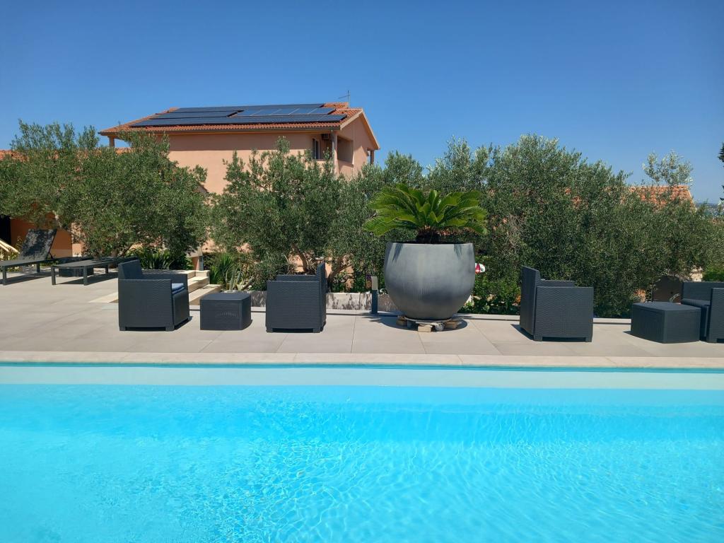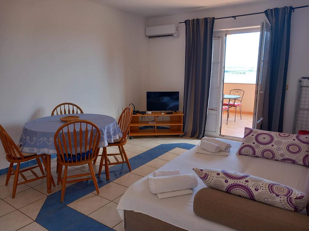 Ferielejlighed "Olive" ligger på øen Pasman, i End. Pasman Island ligger i nærheden af National Park Kornati og Krka National Park, som er lige modsat at besøge, hvis du vælger vores indkvartering på øen Pasman. I Middelhavet miljø, huset ikke langt fra havet, tilbyder overnatning i 6 lejligheder med en smuk havudsigt. Alle lejligheder har aircondition, terrasse, TV / SAT, LED TV, sengetøj, håndklæder, køkkenredskaber og madlavning og parkeringsplads i gården af huset og er tilgængelig for alle vores gæster, er der en stor grill og opholdsområde for 12 personer. Stranden er en sandstrand med en brolagt del og er specielt velegnet til små børn, og dels strand er dækket med små beløb, så du har ingen steder at skjule fra solen. Lejlighed hus "Olive" ligger 150 m fra havet, og den vigtigste havn, hvor posthus, apotek, ATM, marked, butikker, restauranter og værtshuse ligger 2 km væk.