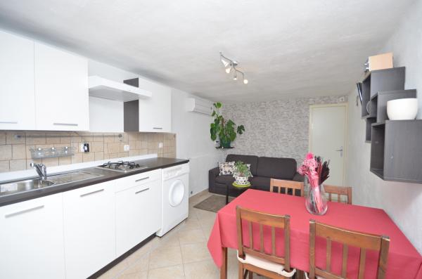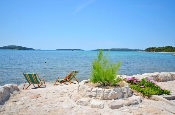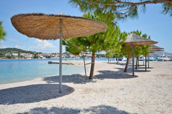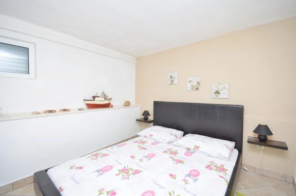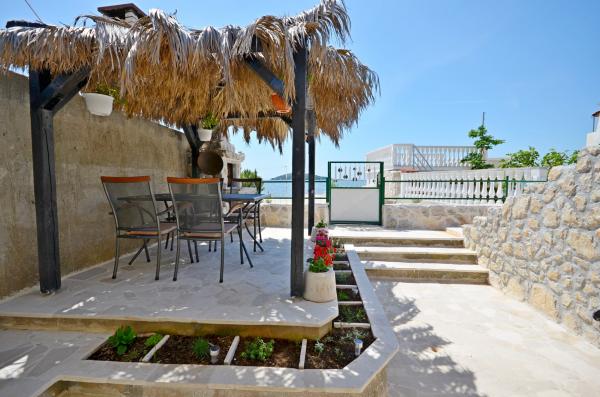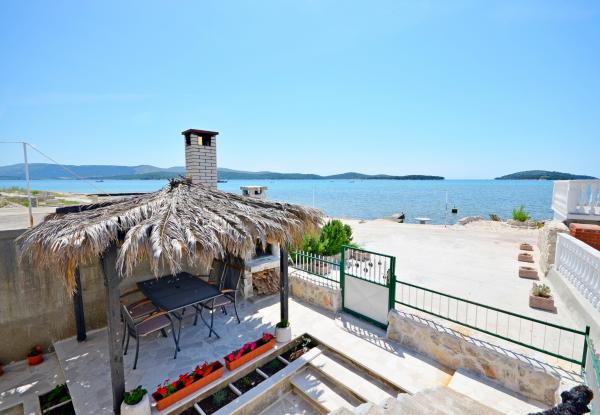 Krapanj er den laveste og mindste beboede ø i Middelhavet, kan kun 300 meter fra stranden og 1,5 m høj. Alle Krapanj og beboerne og deres liv og lange historie ses og finde ud af i kirken kloster, der holder mange udstillinger, og blev bygget i det 16. århundrede. For dem, der søger en rolig og behagelig samfund, Krapanj er det perfekte sted med sine strande og klare vand, og rige køkken i værtshuse. Forbindelsen til fastlandet med en båd, der sejler hver time og Krapanj endnu mere attraktivt sted for en ferie, som det altid hurtigt kan nå alle de bekvemmeligheder af byen og fastlandet, og lige så hurtigt tilbage øen idyl. Fuldt møbleret sommerhus med ydersiden af øens indbyggere, orientering sydvestlige udsigt over øerne og Sibenik øhav, afstand fra havet er 10m, har et soveværelse og et køkken, badeværelse, foran huset er en havepavillon lavet af træ og beklædt med palmegrene på grund af følelser forbindelse med naturen og Middelhavet atmosfære.