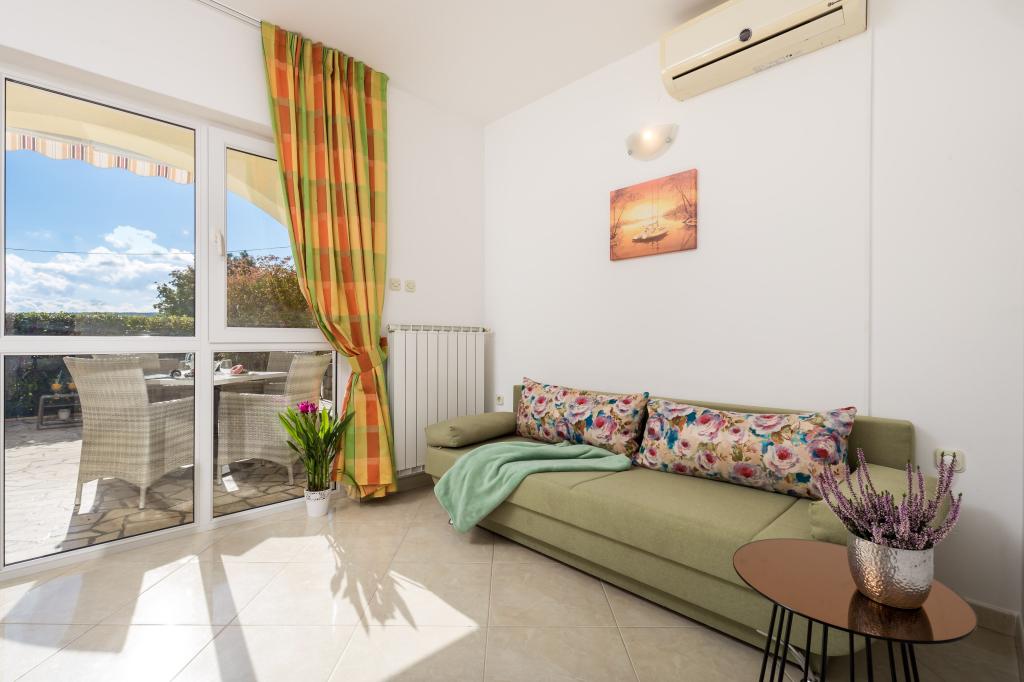 Fire moderne indrettede lejligheder ligger i den rolige landsby Čižići på øen Krk, ideelt til en afslappet familieferie eller en romantisk ferie. Lejlighed 1 og 2 ligger i stueetagen og tilbyder terrasser med liggestole omgivet af duftende middelhavsgrønt, mens lejlighed 2 derudover har en opvarmet jacuzzi og et loungehjørne i den behagelige skygge fra oliventræerne. Lejlighed 3 og 4 på første sal har balkon med havudsigt. Alle lejligheder har aircondition, gratis Wi-Fi, satellit-tv, et udstyret køkken, et badeværelse, sengelinned, håndklæder og gratis parkering. Kæledyr er velkomne. Stranden ligger 500 m væk.