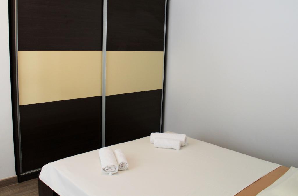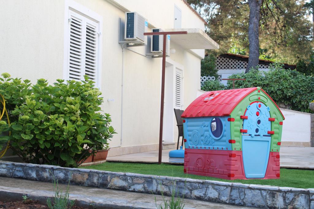 Denne lejlighed er beliggende i et roligt område. Det har en terrasse med udsigt over haven. Det ligger 5 minutters gang fra stranden og centrum. Det er tæt på busstationen. Det har gratis WiFi og privat parkering. Køkkenet er udstyret med ovn, køleskab, kedel og kaffemaskine. Sengelinned og håndklæder er til rådighed.