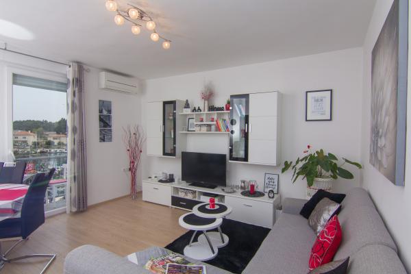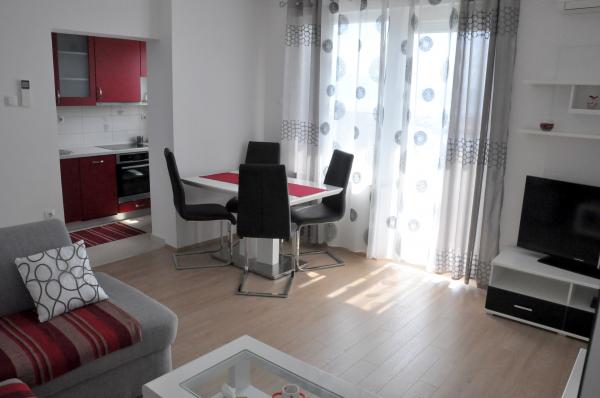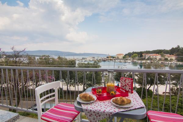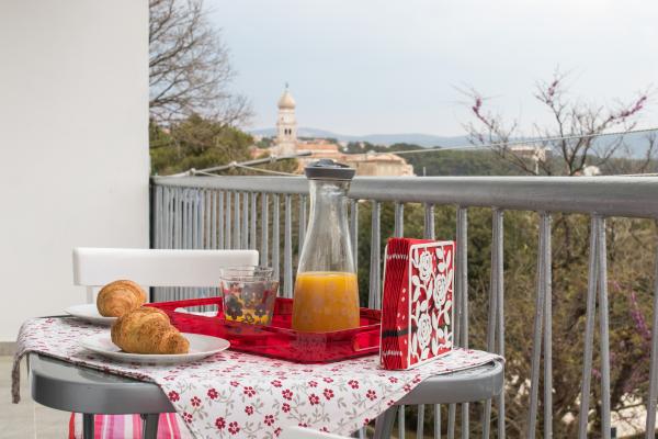 Helt ny og moderne lejlighed i byens centrum, på anden sal i bygningen, kun 20 meter fra havet. Balkonen byder på en fantastisk udsigt over Krk katedralen, promenade og lystbådehavn-port. Gratis internet og parkering. Restauranter, butikker, fiskemarked, marked, bank, apotek og gas station ligger kun 100 meter væk og stranden 200 meter.