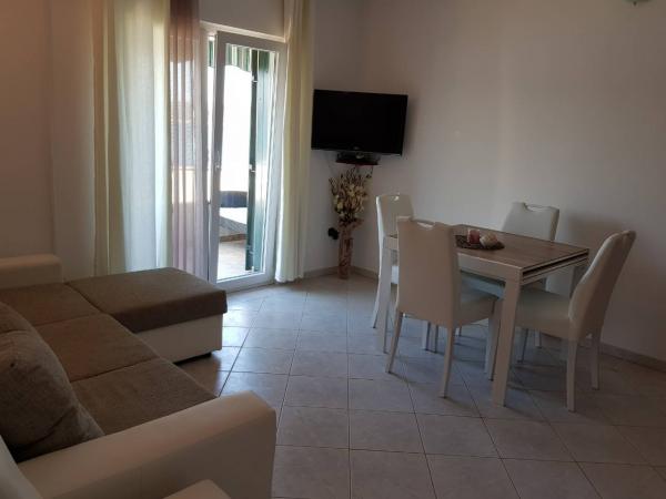 Helt og moderne udstyrede lejligheder i en rolig del af Krusevo, der ligger første række til havet. Strand og hav er 10 meter væk fra ejendommen. Sandstrand egnet til små børn. Der er ingen stor havdybde.