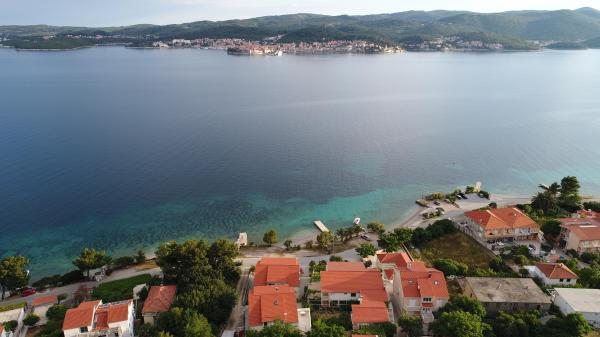 Først og fremmest, nice ejere! Vi fik en meget større plads til samme pris, bare fordi det var lavsæsonen, og værelset var fri - ikke tugte om det helt. Boliger rent værelse, godt udstyret køkken, kan du roligt lave mad selv hvis nogen ønsker at. På afrejsedagen ejerne inviteret os til en farvel øl til sig selv :) Som for området er primært fred og ro, blot et par dusin meter to restauranter, hvoraf den ene (større - kan ikke huske navnet) tjener fremragende mad. Grillet fisk VM. Ejerne har deres Panorama restaurant, som er placeret over huset - men på grund af terrænet - det beløb, du skal enten gå der i bil eller forberede sig til klatring. Stranden lige foran bygningen, vejen er ikke meget travlt, så det nærhed er ikke besværlig. Vi gik til dette sted på grund af windsurfing og her, desværre, valg af placering var ikke helt ramt - vinden kom kun én gang i løbet af 9 dages ophold. Men stedet kan sikkert nås med bil, så dette ikke er et problem - til gengæld får vi fred, ro og tomme strand (vi var i første halvdel af juni) Aften udsigt fra balkonen Korcula har hele tiden i hukommelsen. Generelt anbefales stærkt !!!