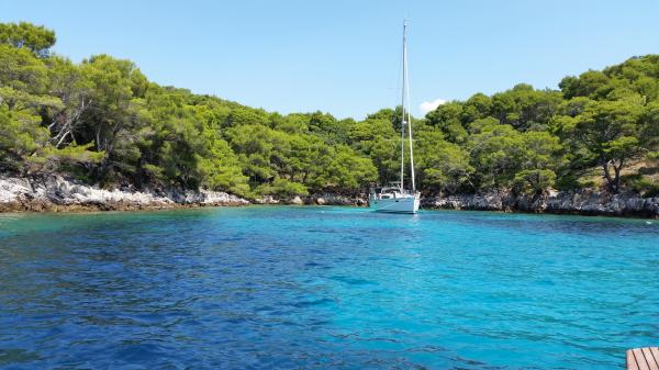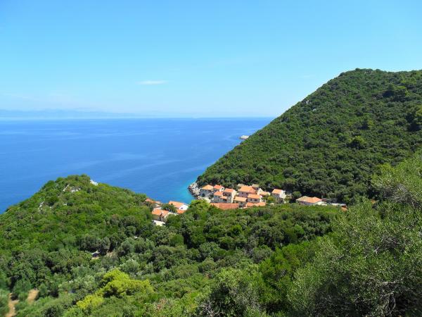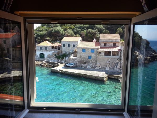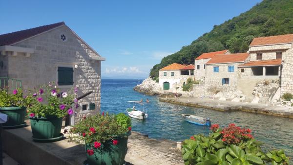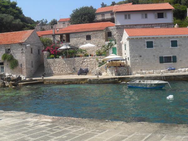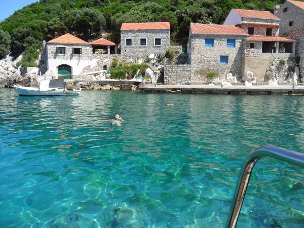 Ferielejligheder Simic er beliggende i et roligt, attraktivt bugt havnen i 10 meter fra havet. Bag lejligheden 2 plus 1 er en terrasse i haven og en separat udgang til trappen til havet. Ved 5 meter fra havet er en stor terrasse, til rådighed for begge lejligheder. Den er udstyret med liggestole, borde og stole, parasoller og udendørs bruser. Der er også en udendørs grill, kaj og delte parkering på 15 meter fra huset.