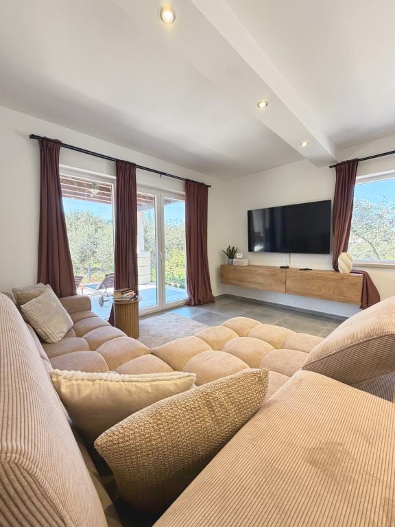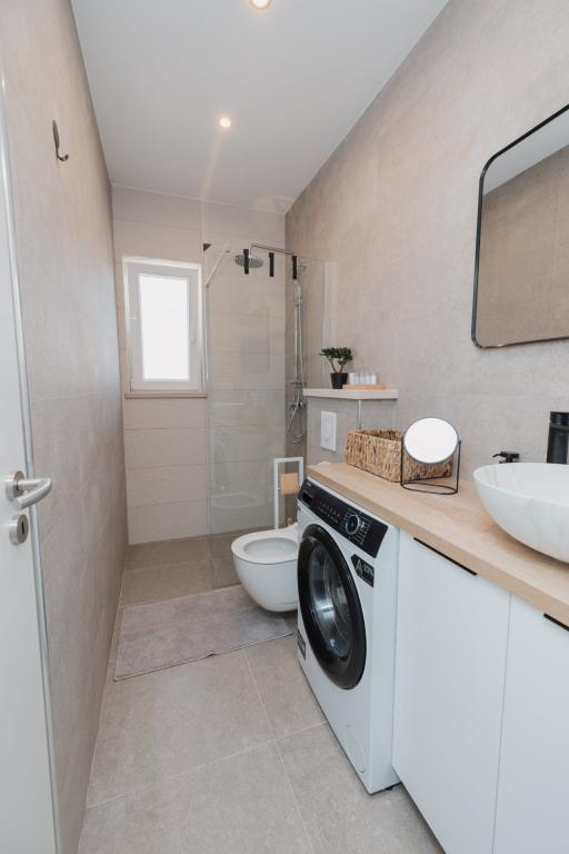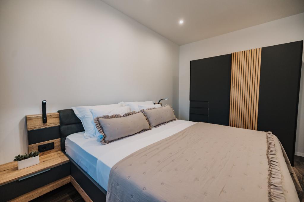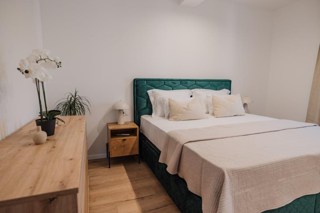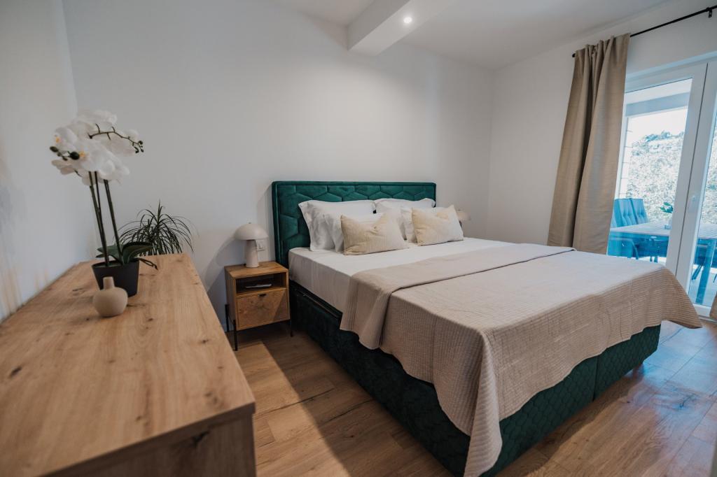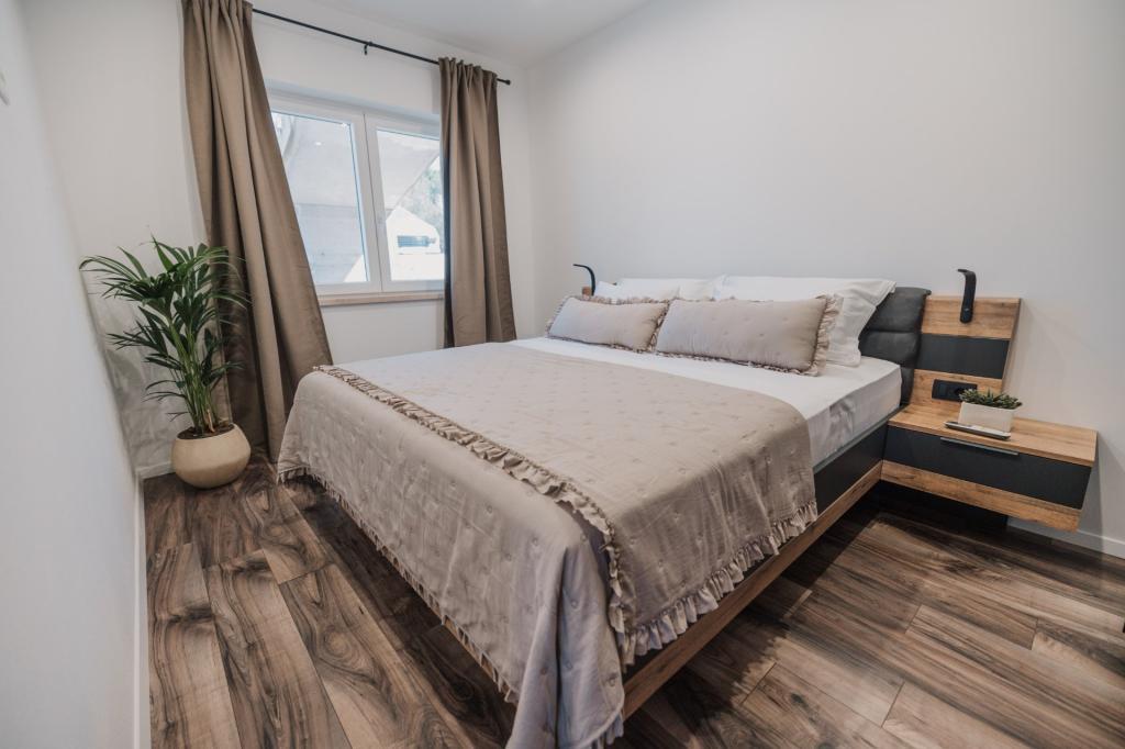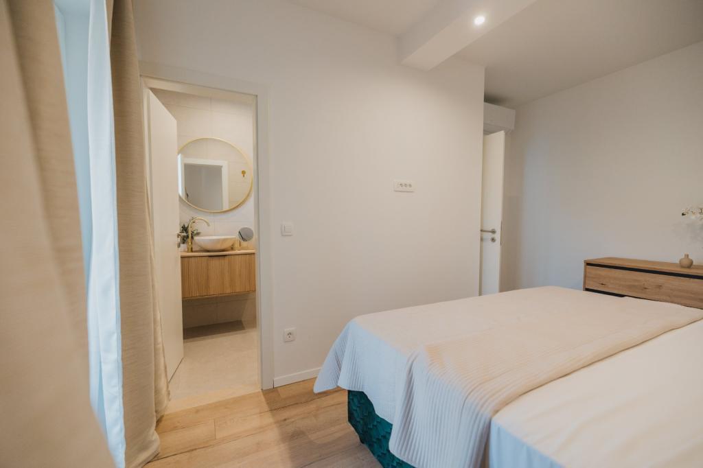En nyrenoveret og moderne udstyret lejlighed udlejes i Lumbarda på øen Korčula, beliggende i den autentiske atmosfære af en rummelig olivenlund, der garanterer gæsterne absolut intimitet og fred. Lejligheden er på 75 kvadratmeter med to soveværelser og to toiletter, og der er lagt særlig vægt på det ydre, som inkluderer en stor terrasse på 35 kvadratmeter og en have på 100 kvadratmeter, ideel til afslapning i fred og ro. Interiøret er fuldt udstyret til et komfortabelt ophold for fire personer, inklusive opvaskemaskine i køkkenet, vaskemaskine på badeværelset, MaxTV og hurtigt 5G-internet, og for familier med små børn er en barneseng tilgængelig på forespørgsel. Beliggenheden er en perfekt kombination af privatliv og nærhed til alle faciliteter; den første badebugt ligger kun 200 meter væk, bymidten ligger 800 meter væk, mens de berømte store sandstrande ligger omkring 2 kilometer væk. Gæster tilbydes privat parkering i bygningen.