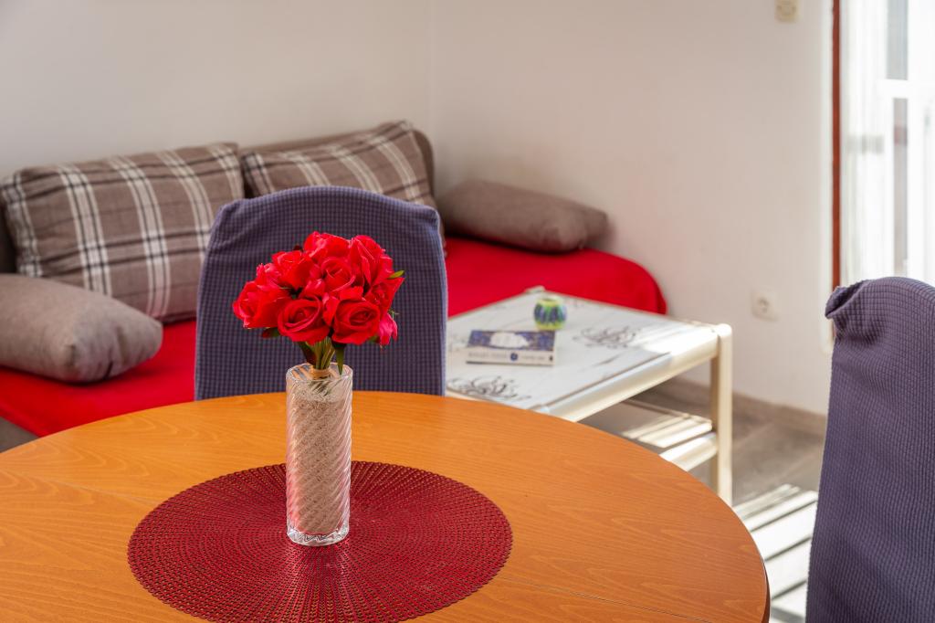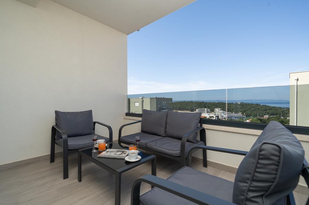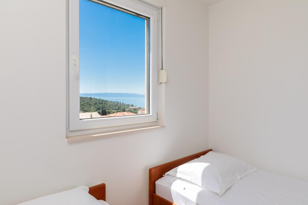 Denne lejlighed har 1 soveværelse, opholdsstue med sovesofa, køkken og balkon med havudsigt. Der er en gratis parkeringsplads foran bygningen.