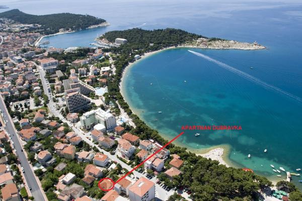Ferielejligheder Dubravka tilbyder dig at tilbringe din ferie i familiens hus i et roligt område i en afstand af kun 50 meter fra den største strand, nær parken. Lejlighed Dubravka i sin 50 m2 indvendige rum tilbyder dig en rummelig stue med køkken, et soveværelse med en dobbeltseng og et badeværelse med toilet. I lejligheden Dubravka er 2 klimaanlæg og 2 tv. Lejligheden har en 40 m2 terrasse og en stor have med en pejs, væk fra vejen ideel for børn og kæledyr. Gratis parkering for ét køretøj.