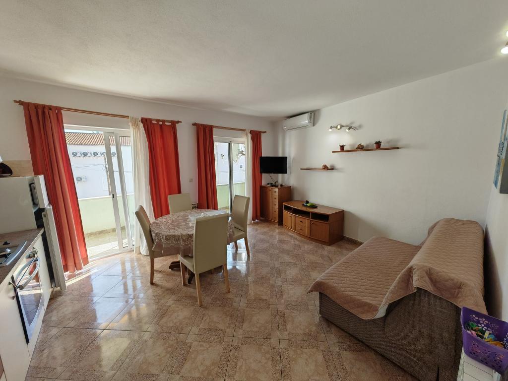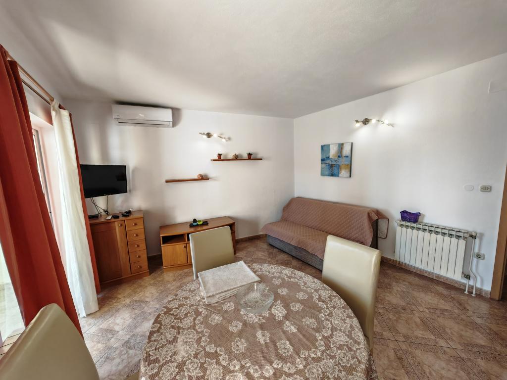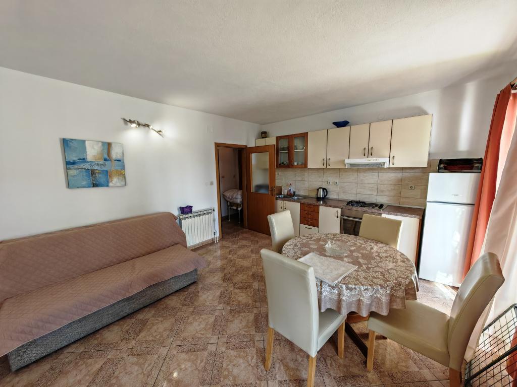 Lejlighed på første sal i et lejlighedskompleks i umiddelbar nærhed af stranden, cirka 50 meter væk. Stor balkon med havudsigt, gratis wi-fi, gratis parkeringsplads foran bygningen. Lejligheden er velegnet til 3 voksne, et par med et eller to små børn. Fremragende beliggenhed, veludstyret og møbleret.