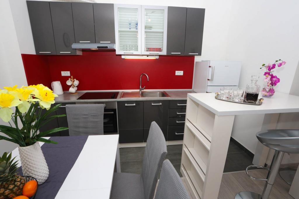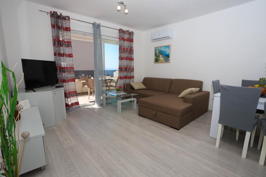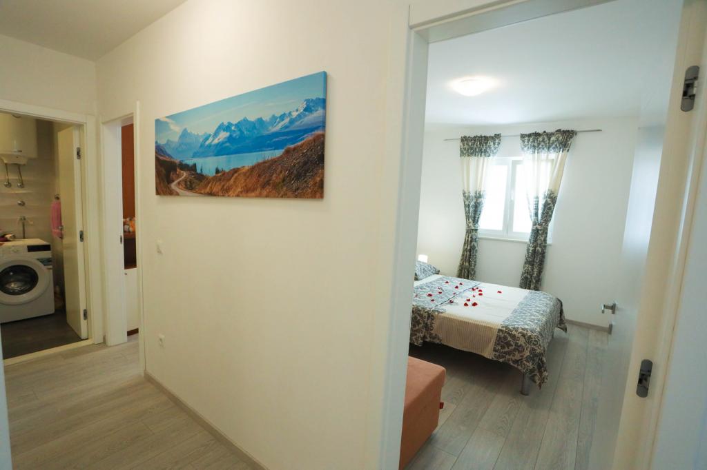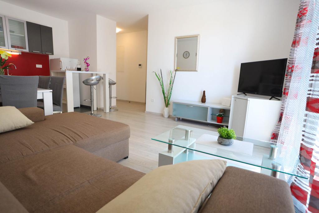 Moderne udstyret lejlighed på første sal i en ny boligbygning med elevator. Lejligheden har alt hvad du behøver for et behageligt ferieophold. Lejlighed Petra består af en spisestue med et udstyret køkken, en stue med en sovesofa, der fungerer som en ekstra seng, et badeværelse og et lille toilet samt to soveværelser. Det ene værelse har en dobbeltseng, og det andet har to senge, der kan adskilles om nødvendigt. Ejendommen ligger 5 minutters gang fra centrum eller den nærmeste strand. I nærheden er der en butik og en sportsplads til rekreation.