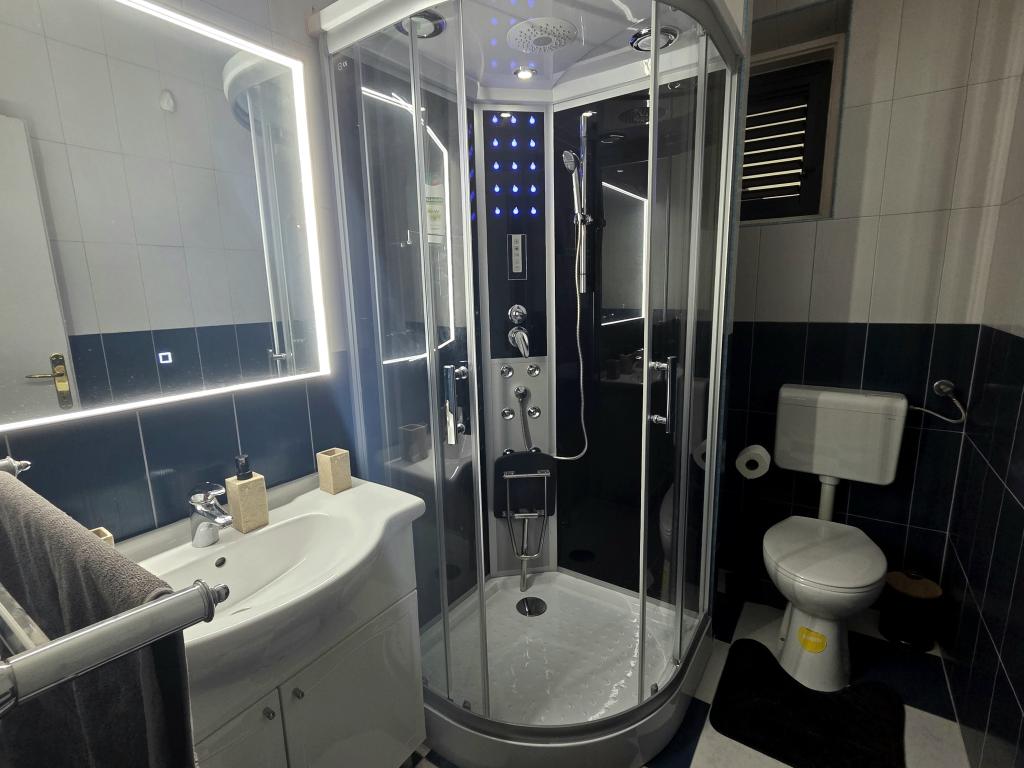 Lejlighed Robert ligger 400 m over den gamle bydel. Den har et areal på 120 m2 og består af to soveværelser, to badeværelser, en stue og et køkken. Foran lejligheden er der jacuzzi, tv, bord med bænke, grill, swimmingpool med liggestole og bruser samt privat parkering til din bil. Velkommen!