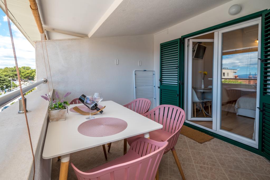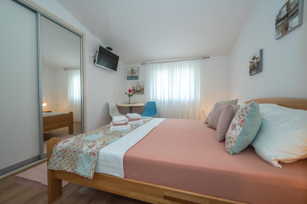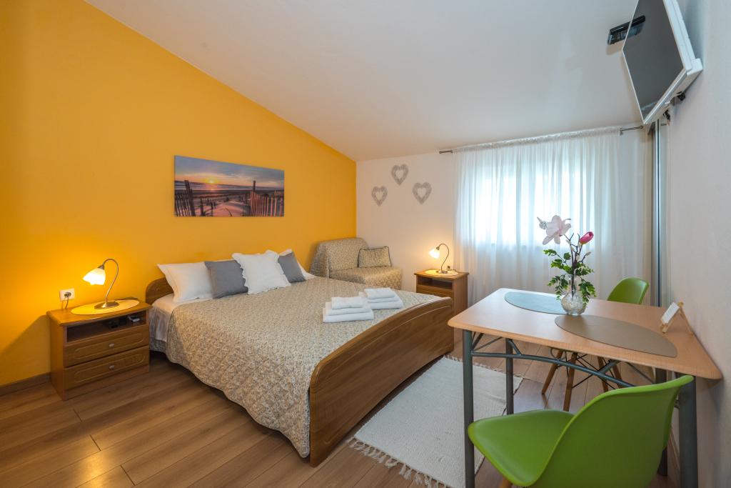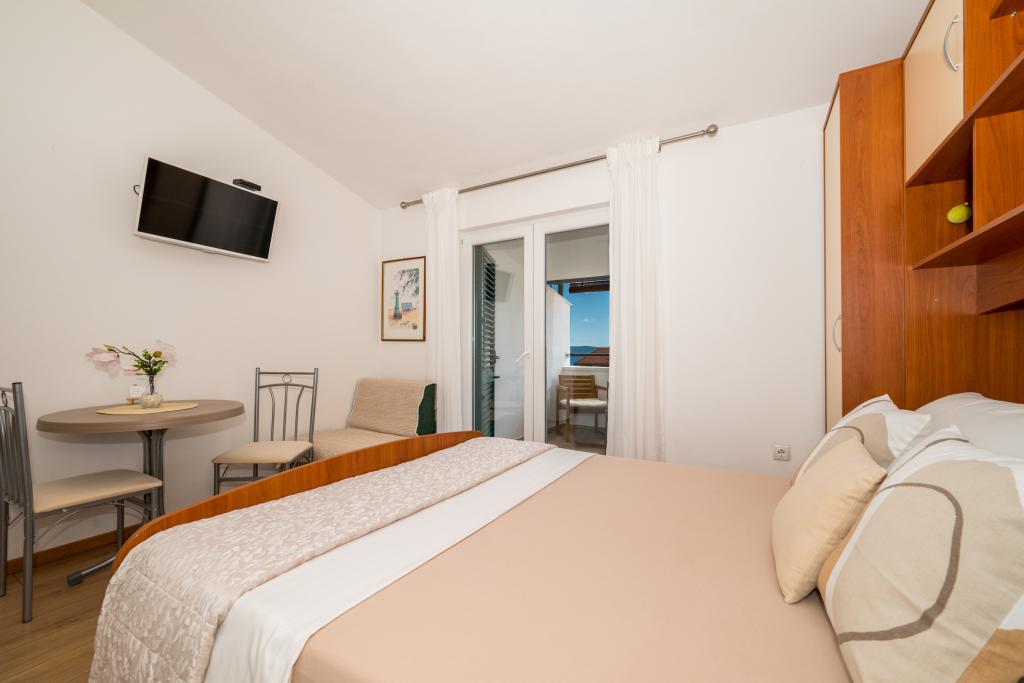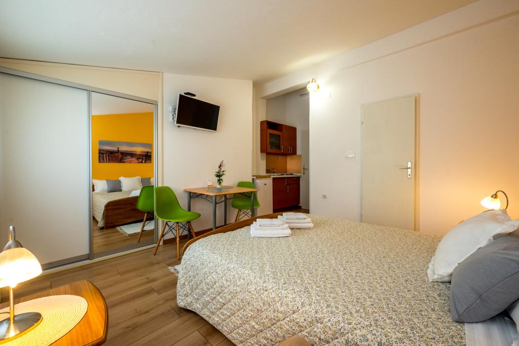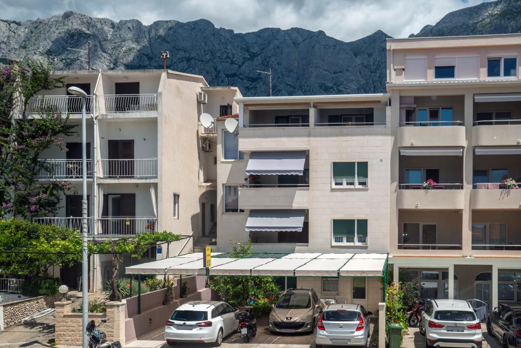 Værelserne er pæne, moderne og veludstyrede og ligger på anden sal i et familiehus, foran hvilket der er en gårdhave til parkering af gæsternes biler. Selve huset ligger i en smuk og meget turistisk del af Makarska, cirka 90 m fra bystranden, og inden for 200 m af dette område ligger der 8 hoteller. Værten har mange års erfaring i turistbranchen. I en afstand af 500 m fra huset ligger et tenniscenter og et vandland, 800 m fra byens største bypark med sports- og fritidsfaciliteter, og 1000 m fra begyndelsen af byens centrum. 100 m fra er der et dykkercenter, og i samme afstand ligger Biokovka Hotel, som tilbyder indendørs swimmingpools, saunaer, fitnesscentre, fysioterapi og massage. Nærliggende attraktioner inkluderer byens Shell Museum, Biokovo Naturpark med den berømte Skywalk, den Røde og Blå Sø i Imotski, turistbådture til øen og byen Korčula samt den berømte Zlatni Rat-strand på øen Brač.