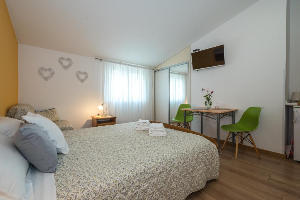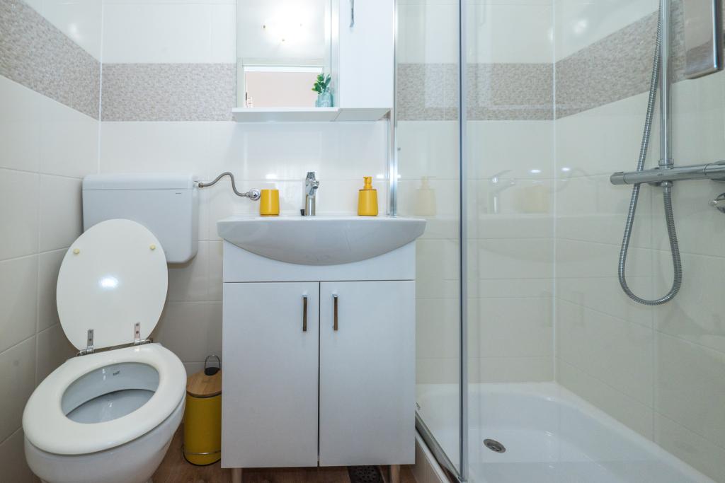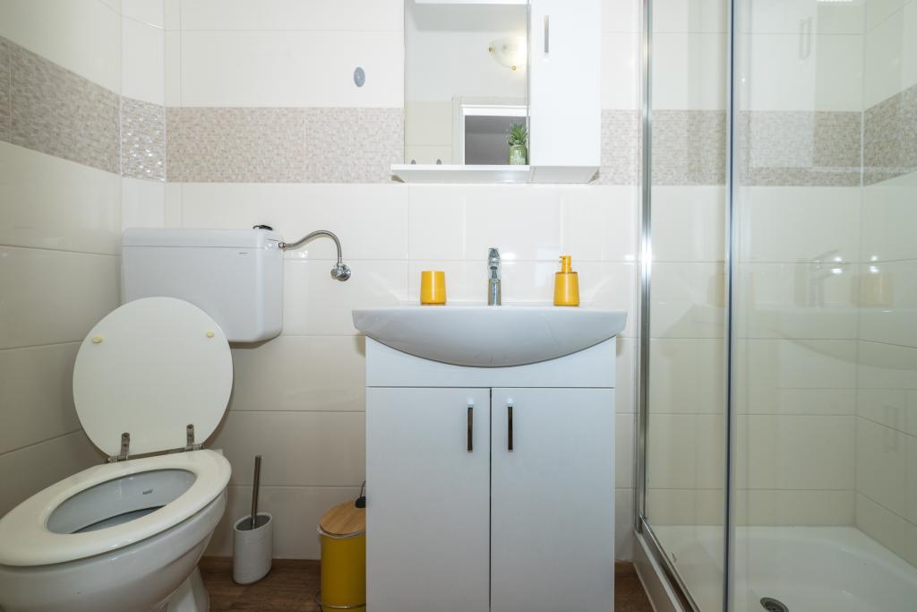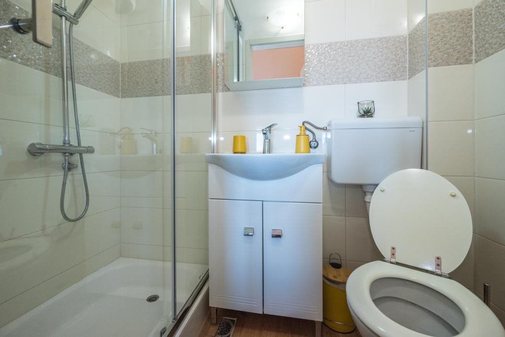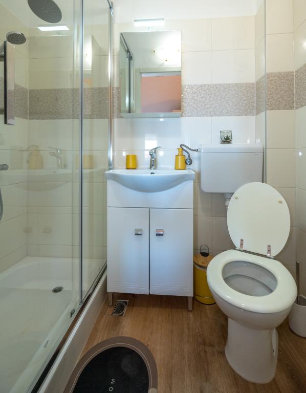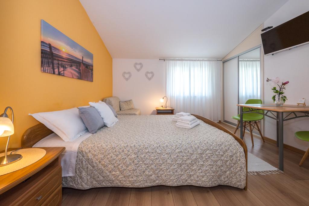 Værelserne er pæne, moderne og veludstyrede og ligger på anden sal i et familiehus, foran hvilket der er en gårdhave til parkering af gæsternes biler. Selve huset ligger i en smuk og meget turistisk del af Makarska, cirka 90 m fra bystranden, og inden for 200 m af dette område ligger der 8 hoteller. Værten har mange års erfaring i turistbranchen. I en afstand af 500 m fra huset ligger et tenniscenter og et vandland, 800 m fra byens største bypark med sports- og fritidsfaciliteter, og 1000 m fra begyndelsen af byens centrum. 100 m fra er der et dykkercenter, og i samme afstand ligger Biokovka Hotel, som tilbyder indendørs swimmingpools, saunaer, fitnesscentre, fysioterapi og massage. Nærliggende attraktioner inkluderer byens Shell Museum, Biokovo Naturpark med den berømte Skywalk, den Røde og Blå Sø i Imotski, turistbådture til øen og byen Korčula samt den berømte Zlatni Rat-strand på øen Brač.
