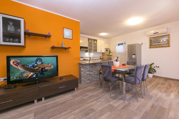 Velkommen til vores lejlighed Roso, som består af tre soveværelser, to badeværelser, stue, køkken og spisestue. Lejligheden er velegnet til 2 eller 3 familier eller 6 voksne og 2 børn, eller til 8 personer i en hvilken som helst kombination. Den er designet til socialt samvær, især terrasse, hvor du kan nyde solen, frisk luft, drikke og griner. Den, der kommer her en gang, kommer altid tilbage! Lejlighed Rosa ligger i et relativt nyt kvarter, et roligt kvarter, som ligger i en fantastisk beliggenhed, langt nok (ikke at høre trafikken) og tæt nok til hovedvejen, hvorfra du kan gå i alle retninger. Stranden gåtur at komme igennem 15 minutter gennem interessante gader, som yderligere komme til at kende vores by, kan du også gå ned i bilen. I nærheden er der en butik, hvor du kan afholde de nødvendige fødevarer og drikkevarer. Vi kan lide at arbejde med mennesker. Makarska er en turistby, og alle lever af turisme, i tråd med, hvad vi vil forsøge at give en pause i vores hjem på den bedst mulige måde, og give alle informerer