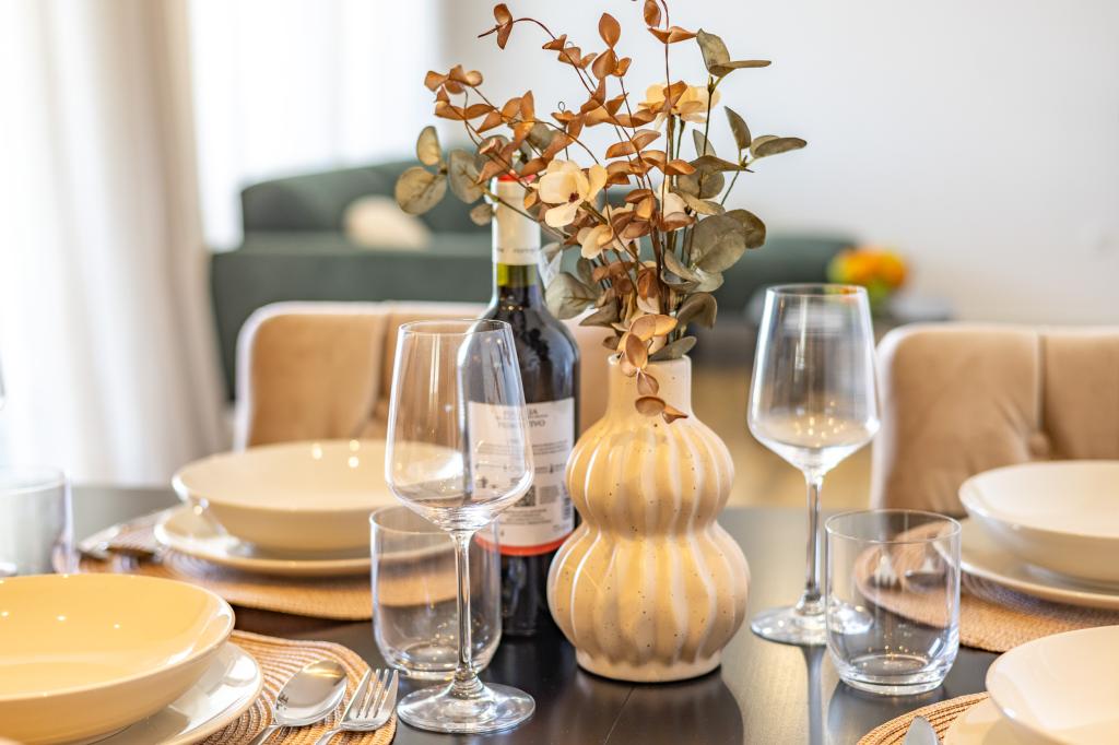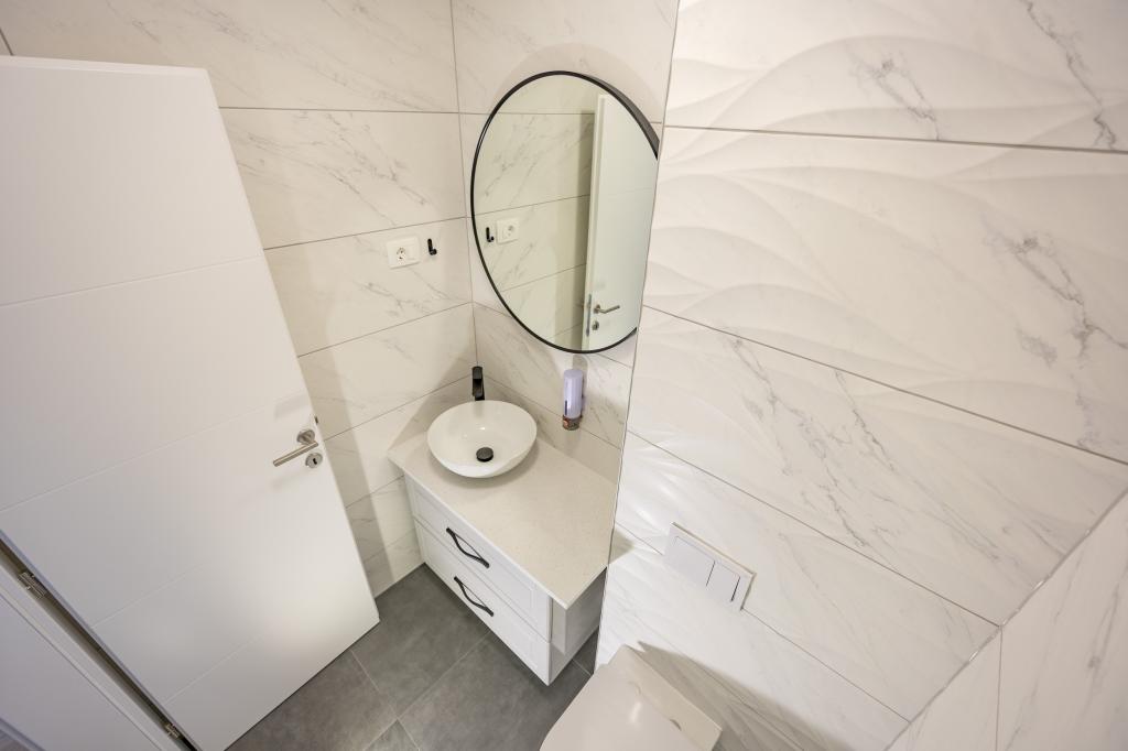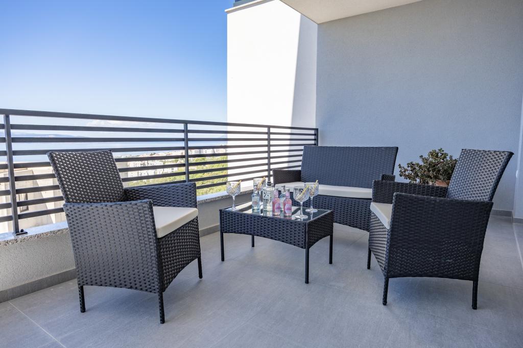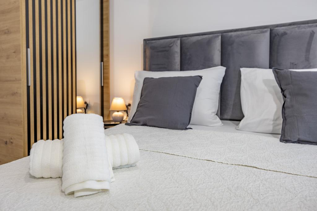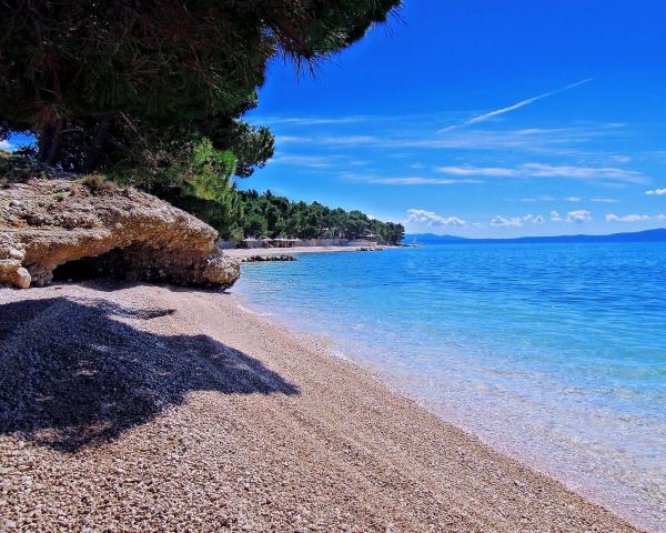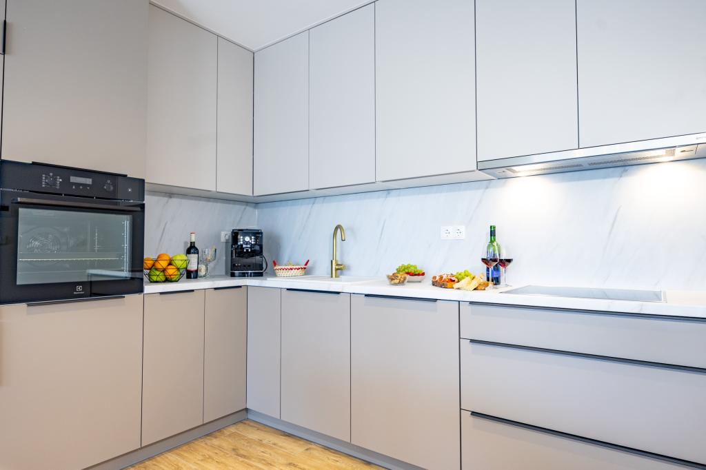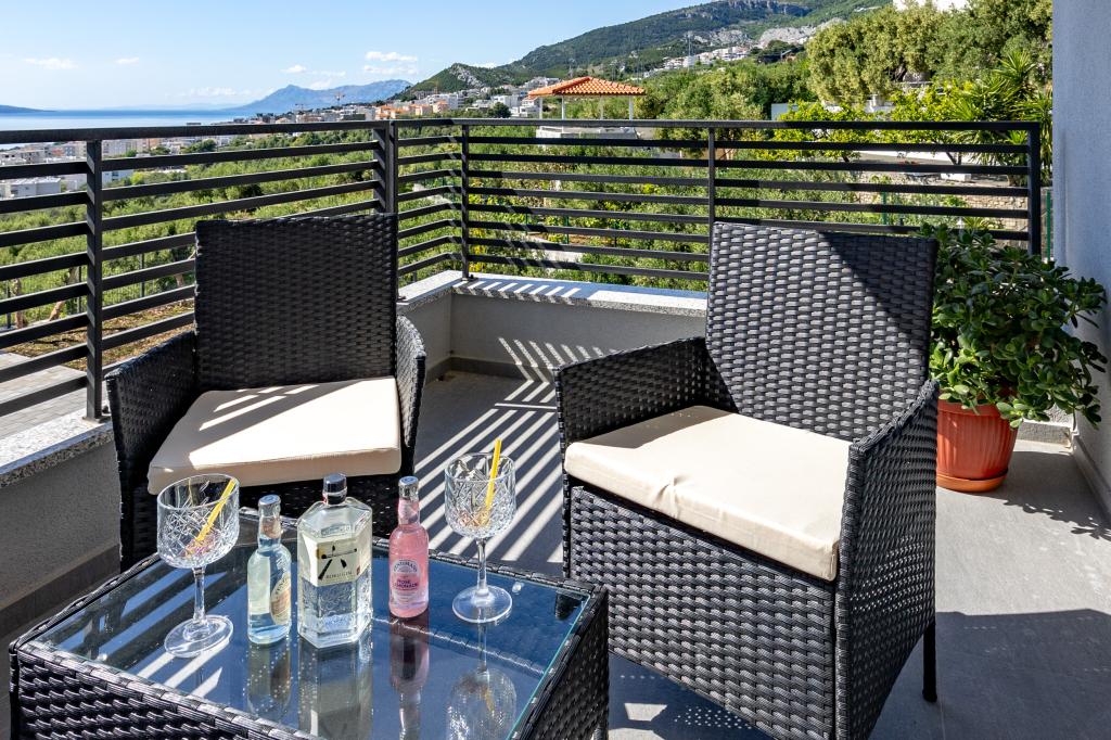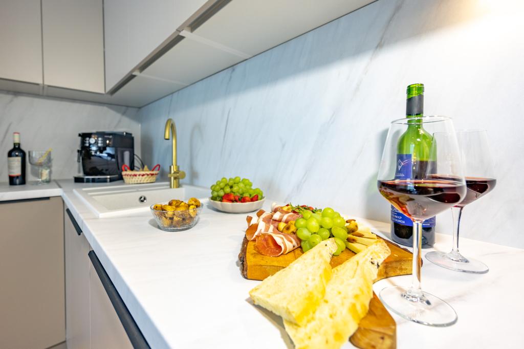 Hver lejlighed udstråler moderne design og nyrenoveret interiør. I den rummelige stue, der er indrettet med smagfulde møbler og moderne detaljer, vil du føle dig hjemme. Det åbne koncept forbinder naturligt stuen med et fuldt udstyret køkken, hvor elegante bordplader, kvalitetsapparater og al den plads, du har brug for til at tilberede dine yndlingsmåltider, venter på dig. Opholdsstuen åbner ud til en behagelig balkon - et ideelt sted til morgenkaffe eller aftenafslapning med et glas vin og en uforglemmelig solnedgang over Adriaterhavet. Hver lejlighed har to komfortable soveværelser med dobbeltsenge, udstyret med blødt sengetøj og masser af opbevaringsplads, et moderne badeværelse og et ekstra toilet. Lejlighederne har aircondition og er fuldt udstyrede: TV/SAT, internet, vaskemaskine, opvaskemaskine, kaffemaskine og alt hvad du behøver for et behageligt og ubekymret ophold.