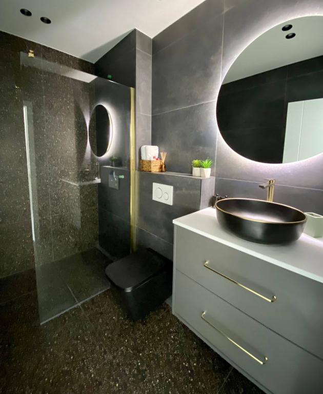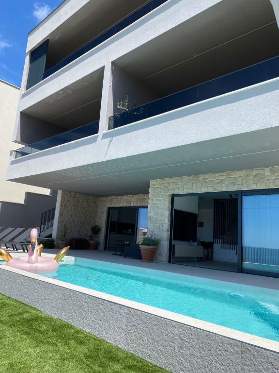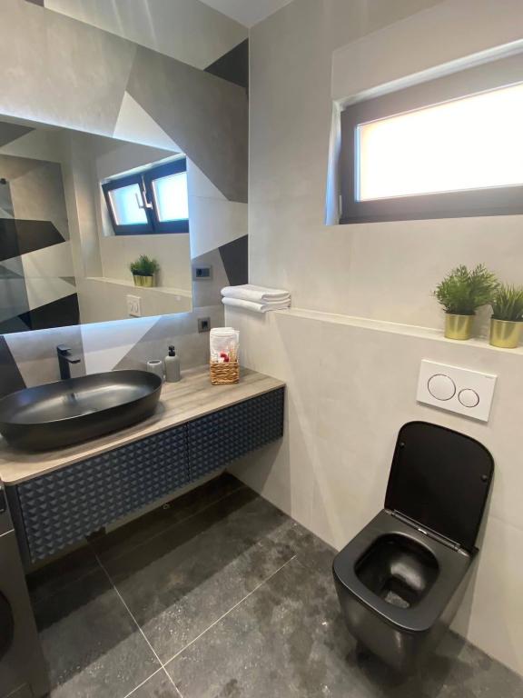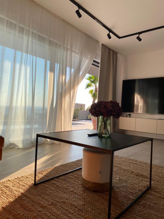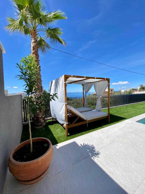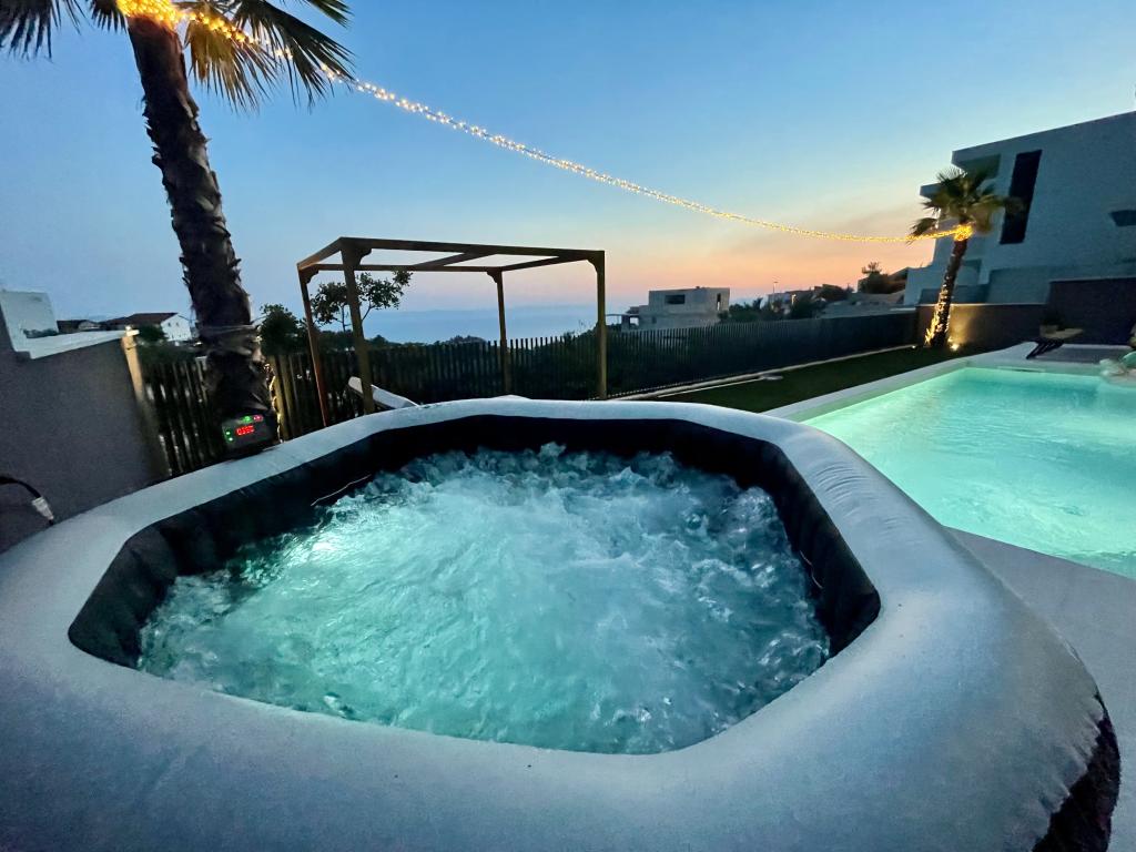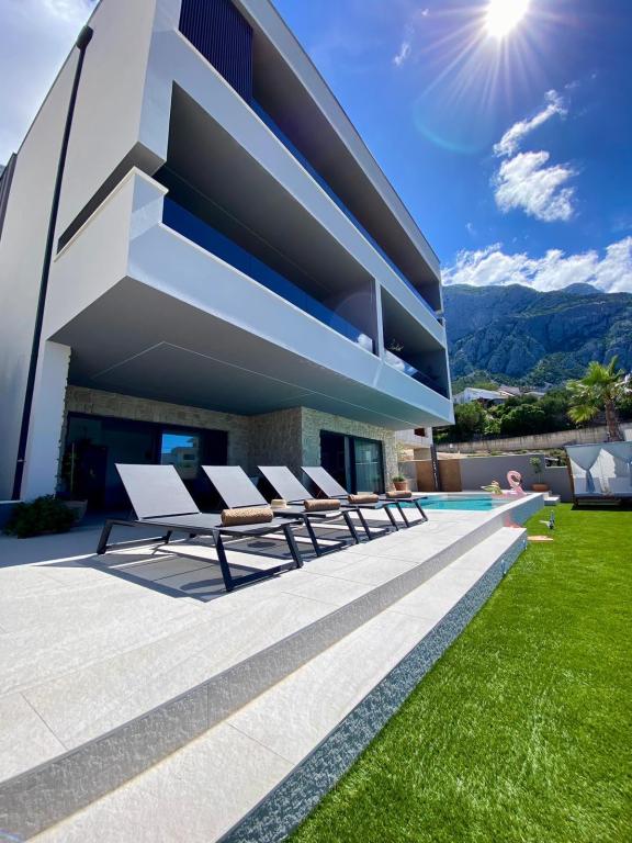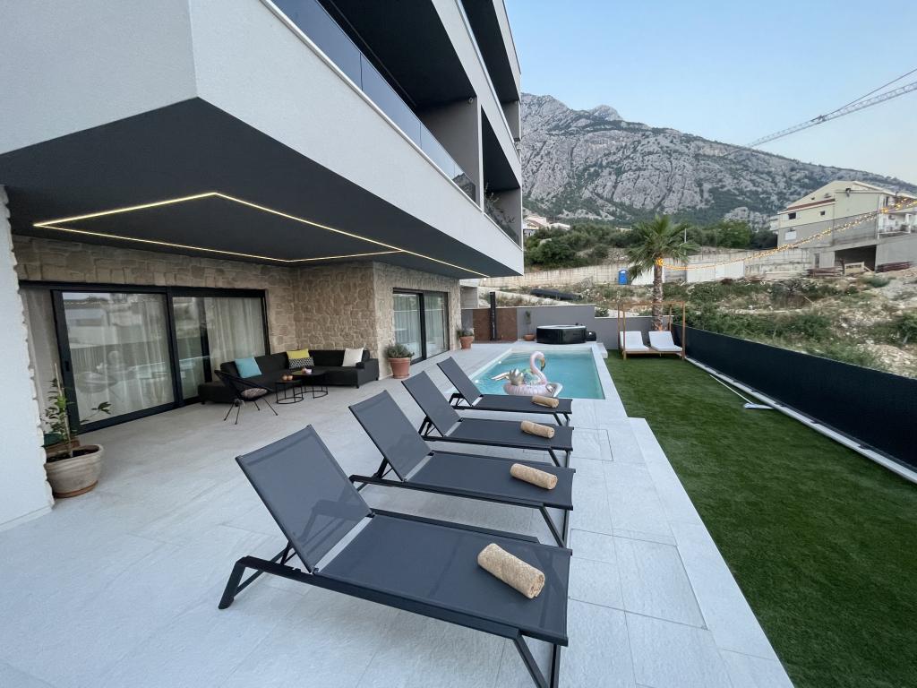 Villa 5 tilbyder indkvartering i Makarska med gratis WiFi og havudsigt samt udendørs swimmingpool, have og fælles opholdsstue. Denne lejlighed tilbyder gratis privat parkering og et fælles køkken. Lejligheden har aircondition, 4 soveværelser, en stue, et fuldt udstyret køkken med køleskab og kaffemaskine samt 3 badeværelser med bruser og gratis toiletartikler. Der er håndklæder og sengelinned i denne lejlighed. Villa 5 tilbyder 4-stjernet indkvartering med spabad og terrasse.